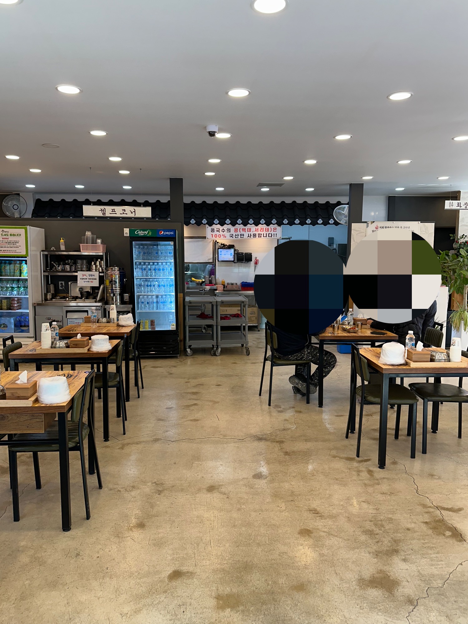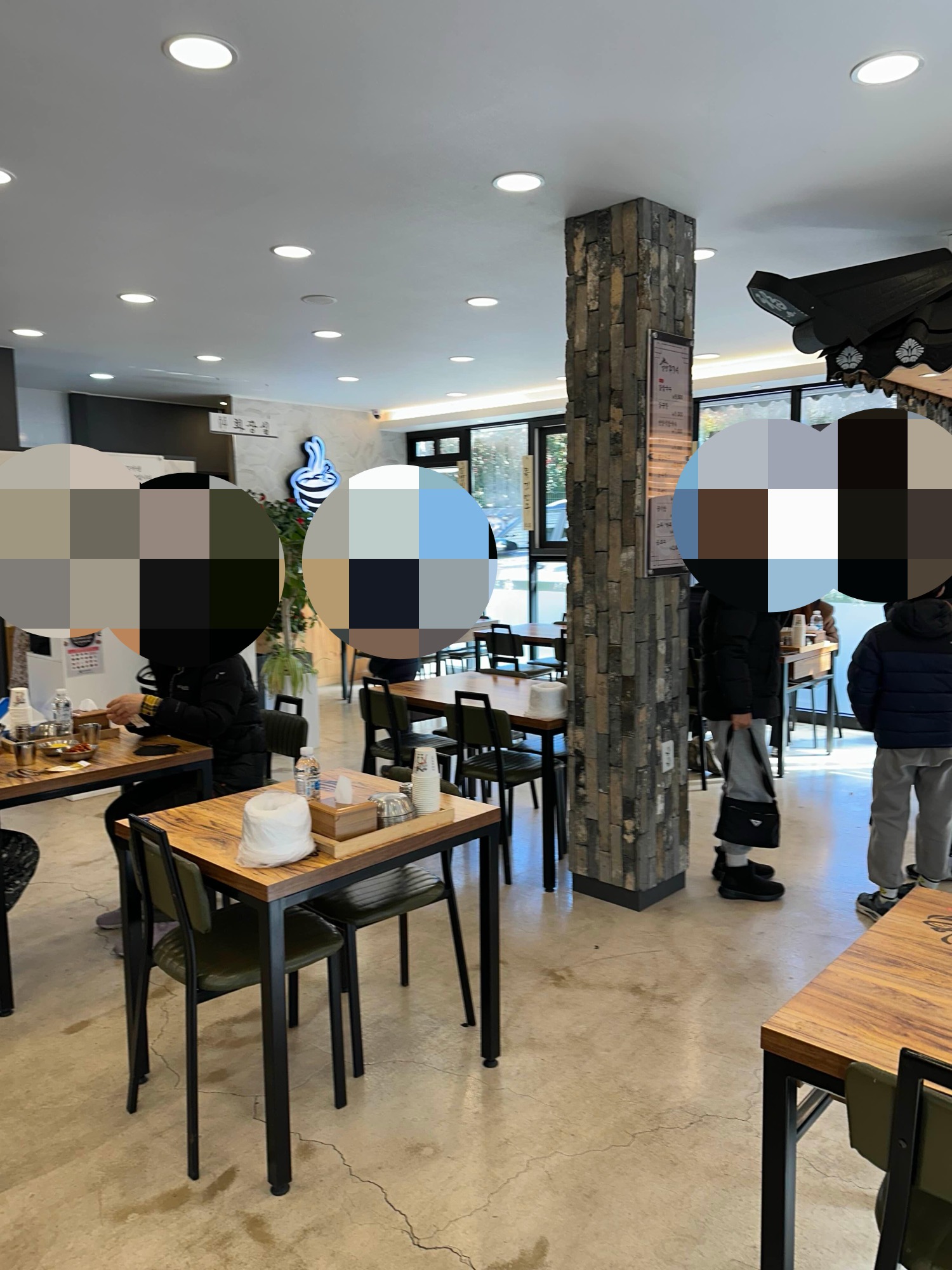 식당 전경입니다. 2인테이블 4인테이블 있는데 붙여서 단체석도 가능합니다.
