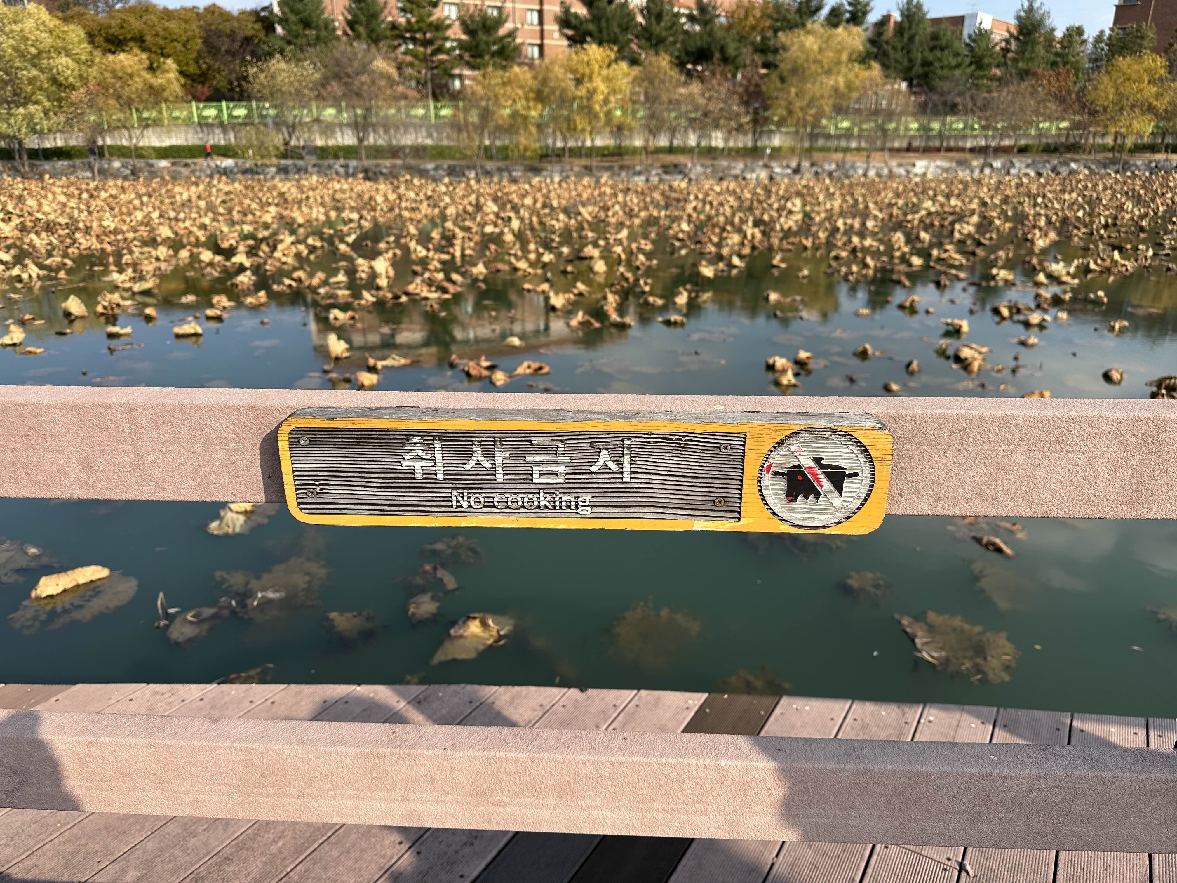 누가 여기서 고기를 구었나 취사금지 팻말이 있네요 ㅎㅎ 음식 노노