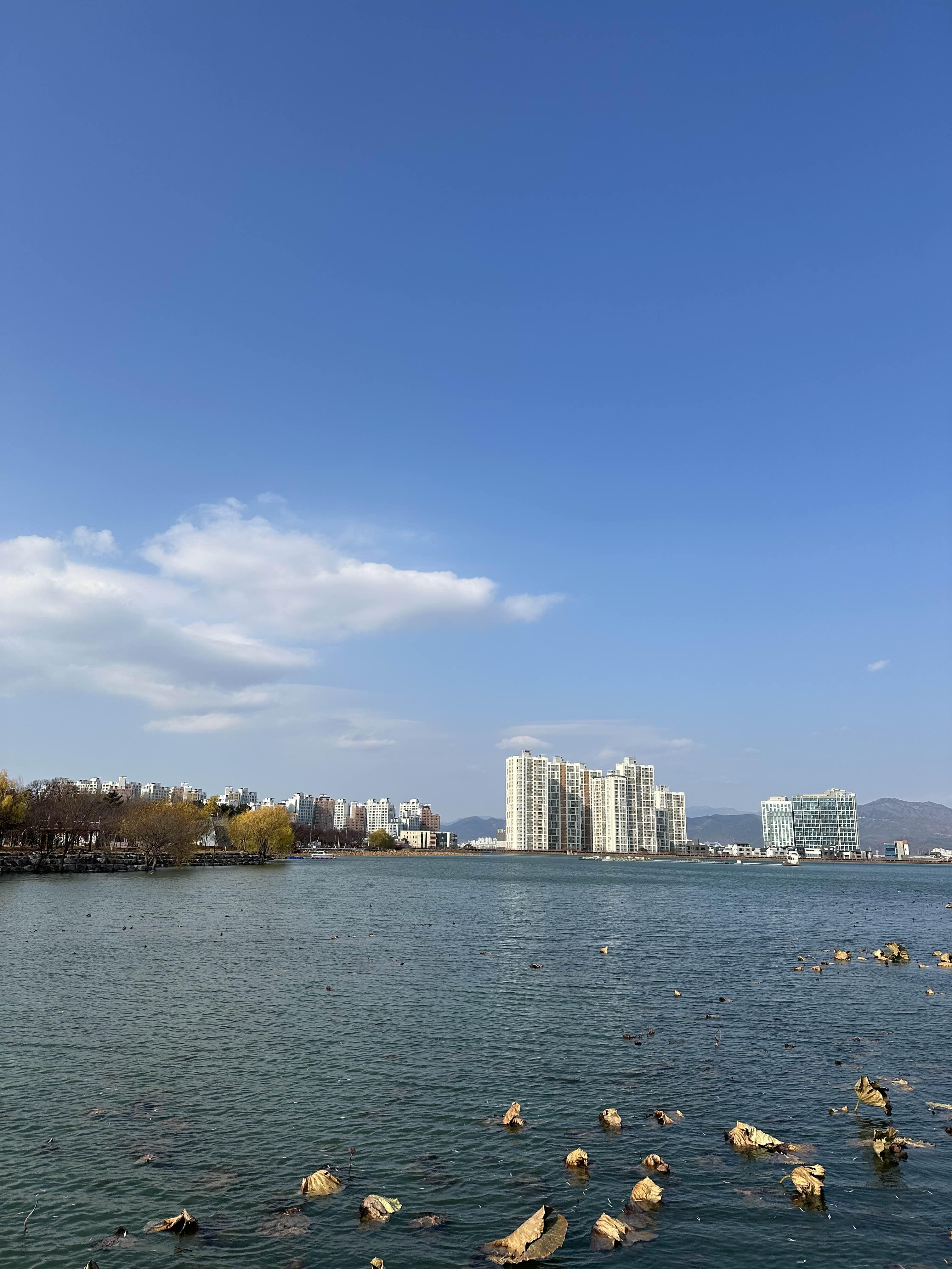 물속에는 올해 자랐던 연꽃이 잠시 휴식기애 들어간 거 같습니다 연꽃이 피었을 때 엄청 예쁠 것 같습니다 그래도 시든 연꽃잎들을 보며 겨울 정취를 느낄 수 있습니다