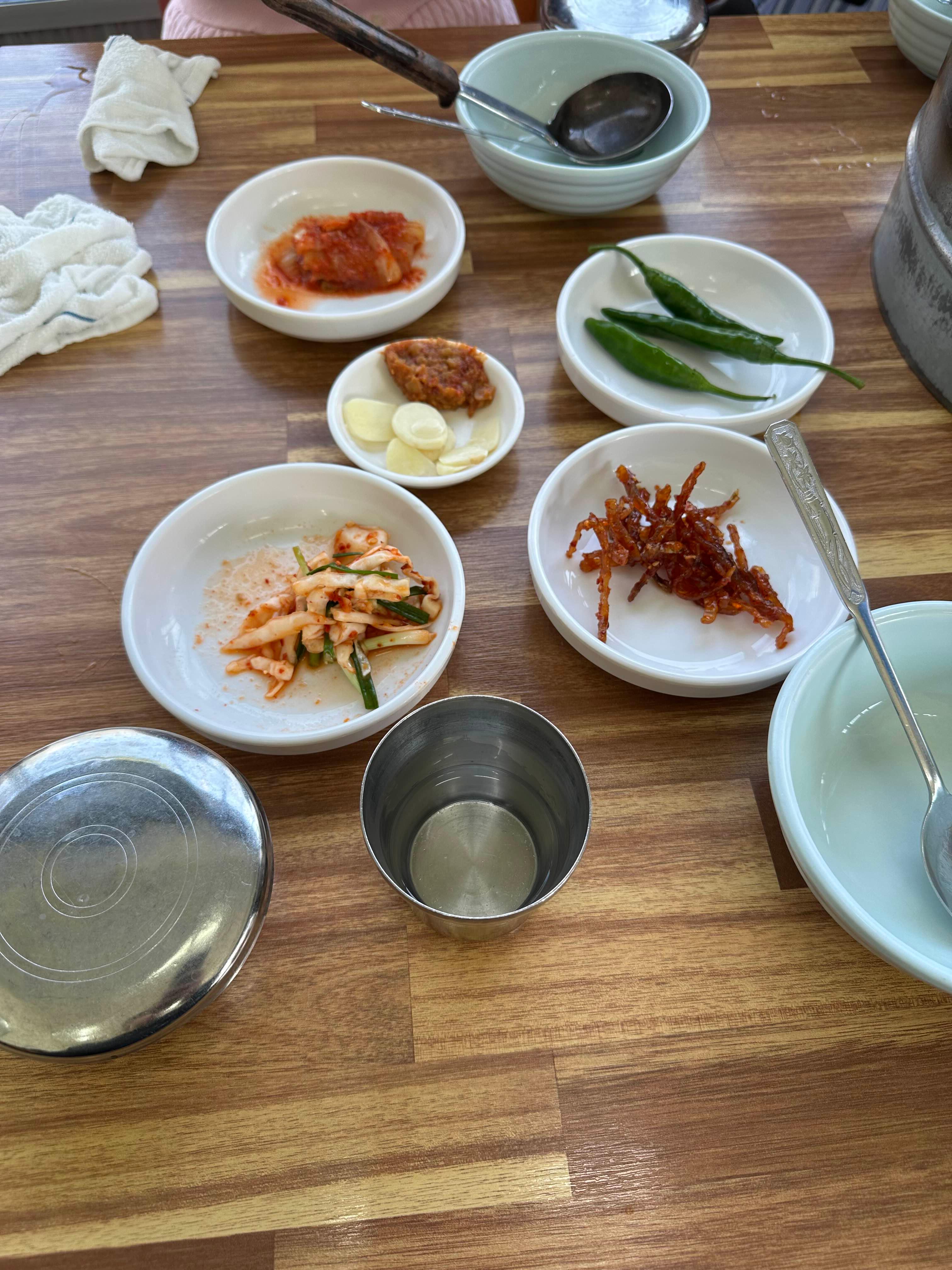밑반찬은 평범합니다. 찌개만 먹기 좀 심심해서 주서 먹는데 김치, 쥐포 무침이랑 같이 먹으니 더 맛있습니다