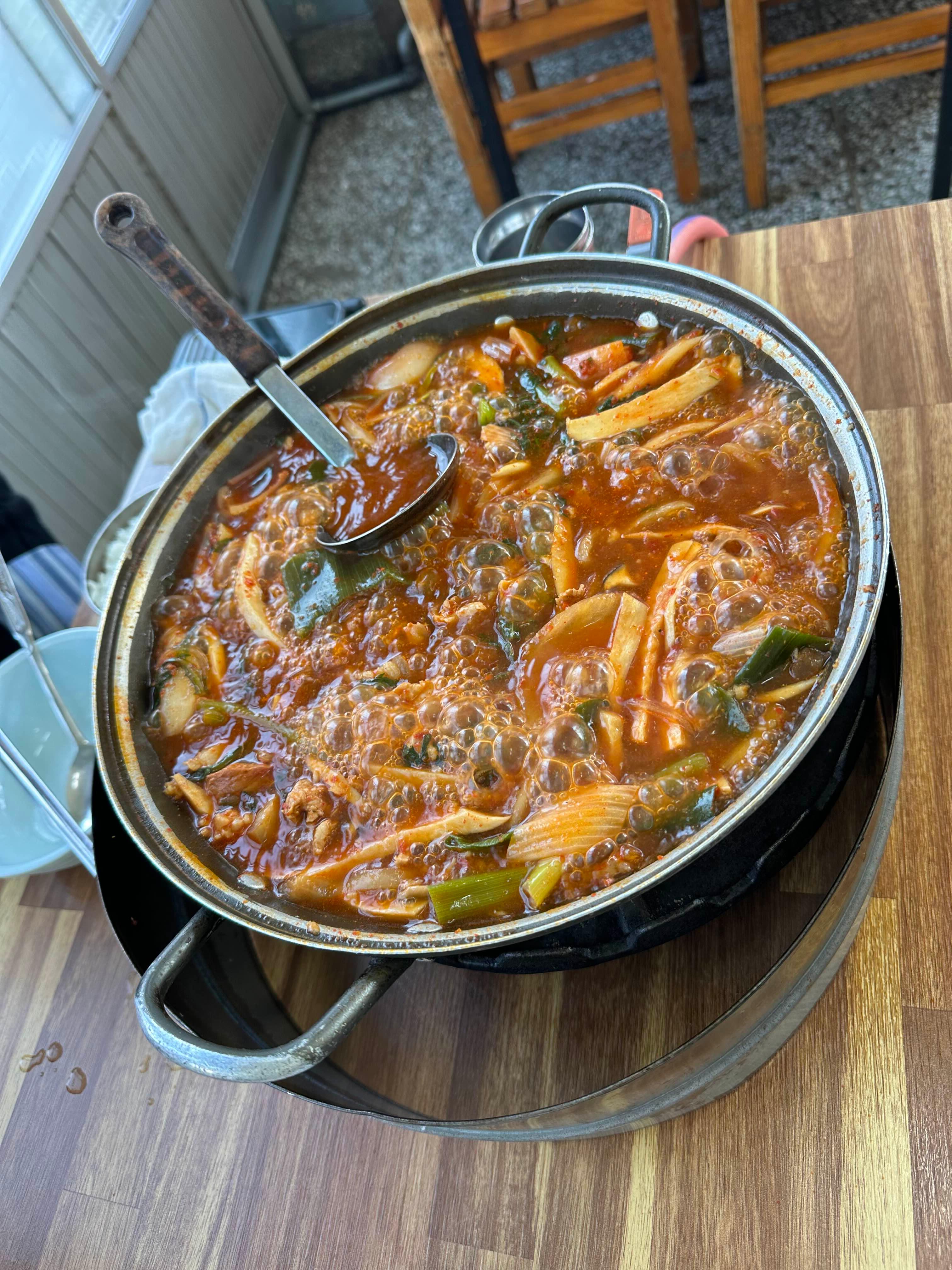 주문하면 찌개를 화로에 끓여 주시는데 사장님께서 먹어도 되는 타이밍을 알려 주십니다 참고하세요