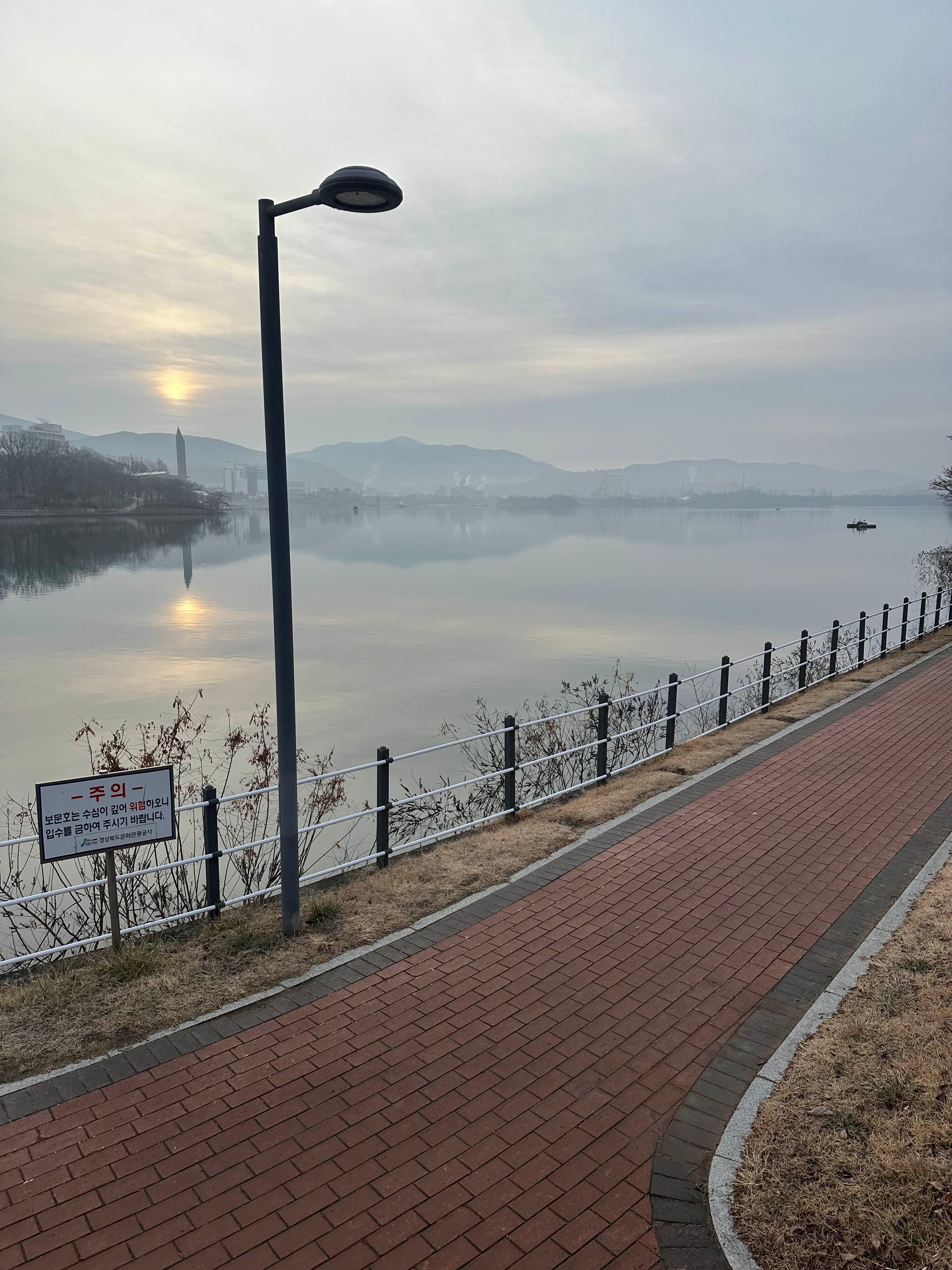 아침 기온은 0도 정도인데 바람이 안 불어서 춥지는 않았습니다 원래 핸드폰은 안 들고뛰는데 오늘은 초행길이라 길 잃어버릴까 봐 들고뛰었습니다
