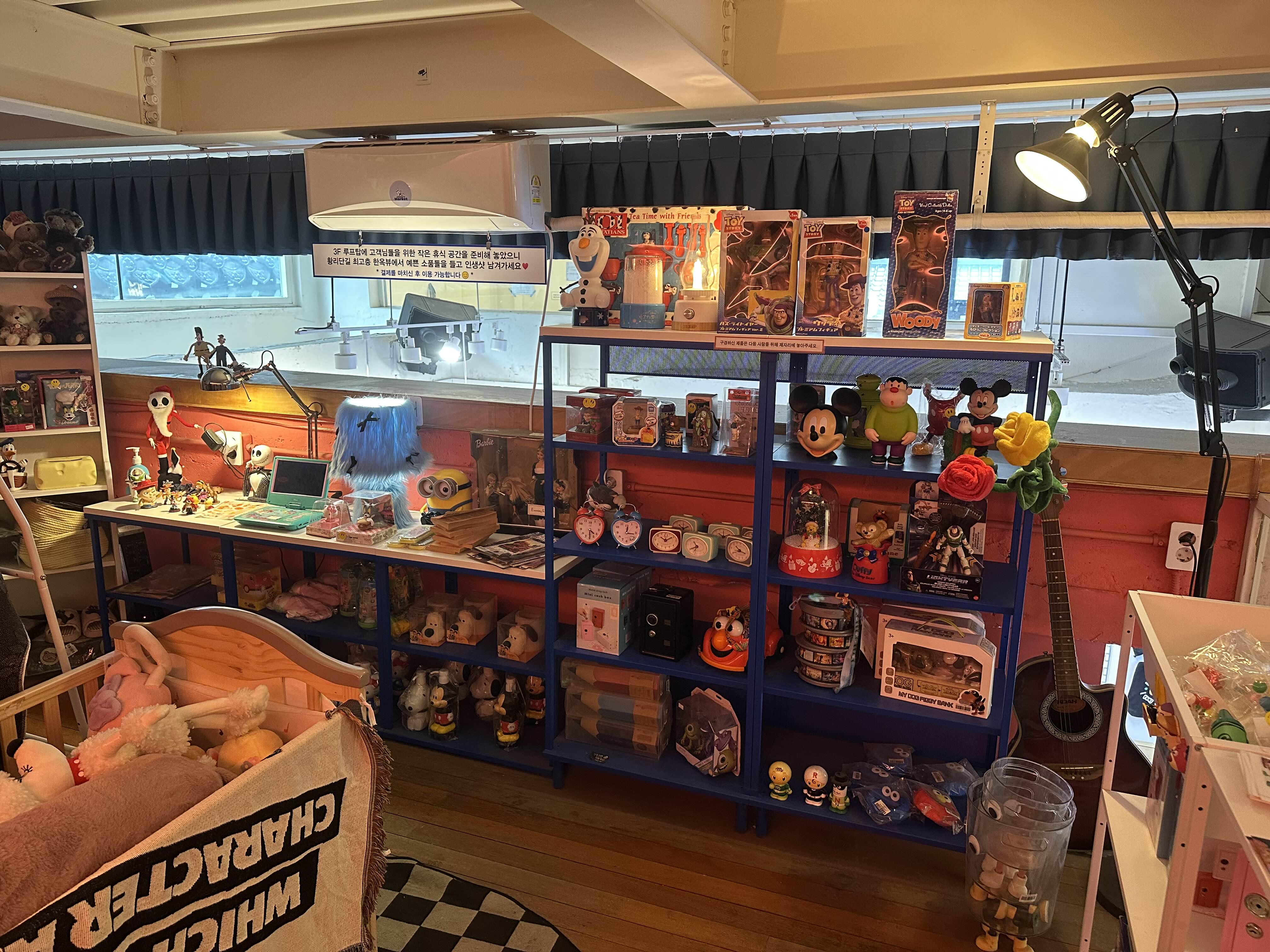 2층으로 올라가면 빈티지 샵이 있습니다 신기한 인형 소품들이 많이 있더라고요