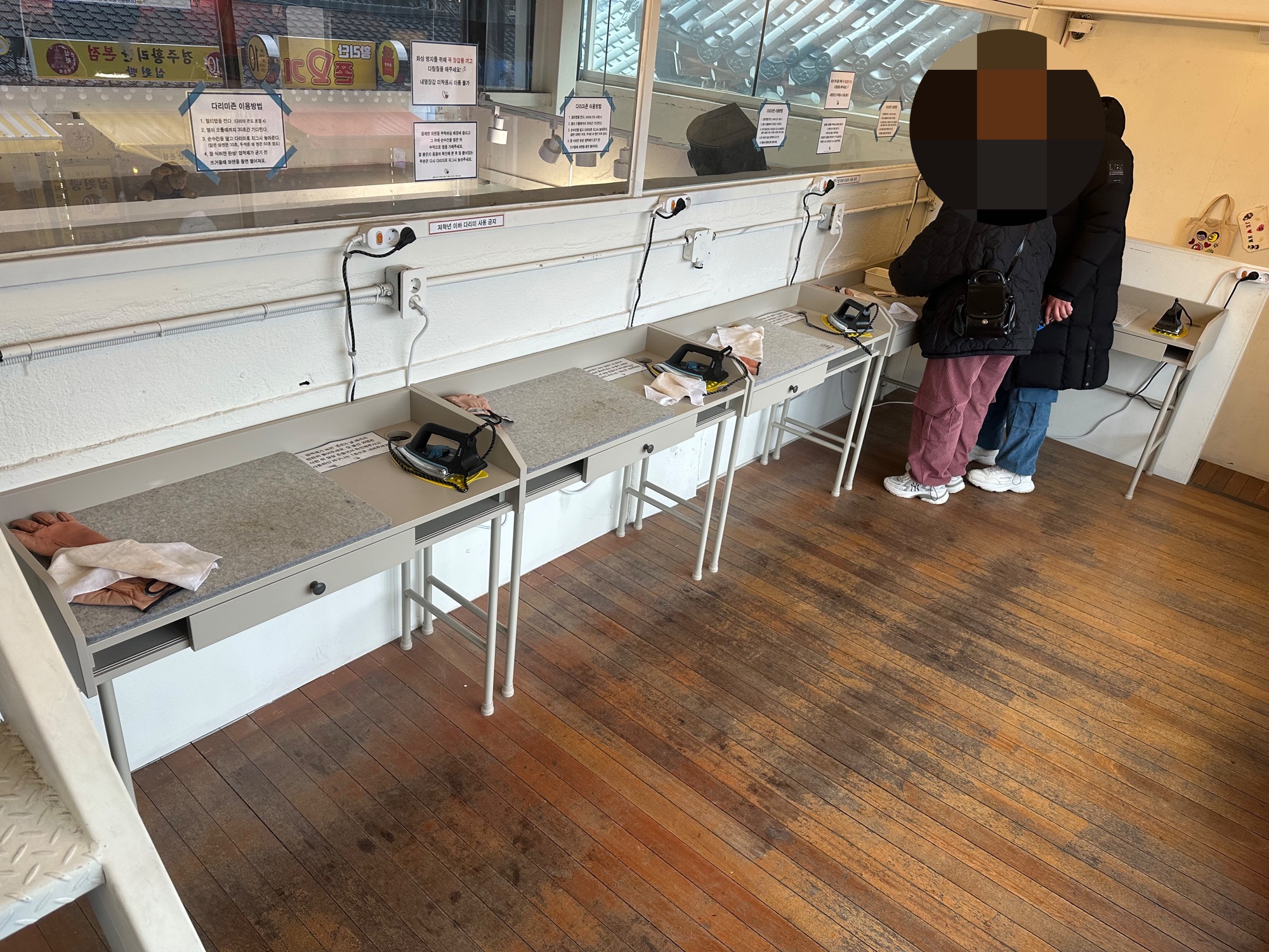 반대편 2층으로 가면 다리미 존이 있습니다 1층에서 산 와펜을 가지고 2층에서 다리미로 작업해서 만드는 것 같습니다