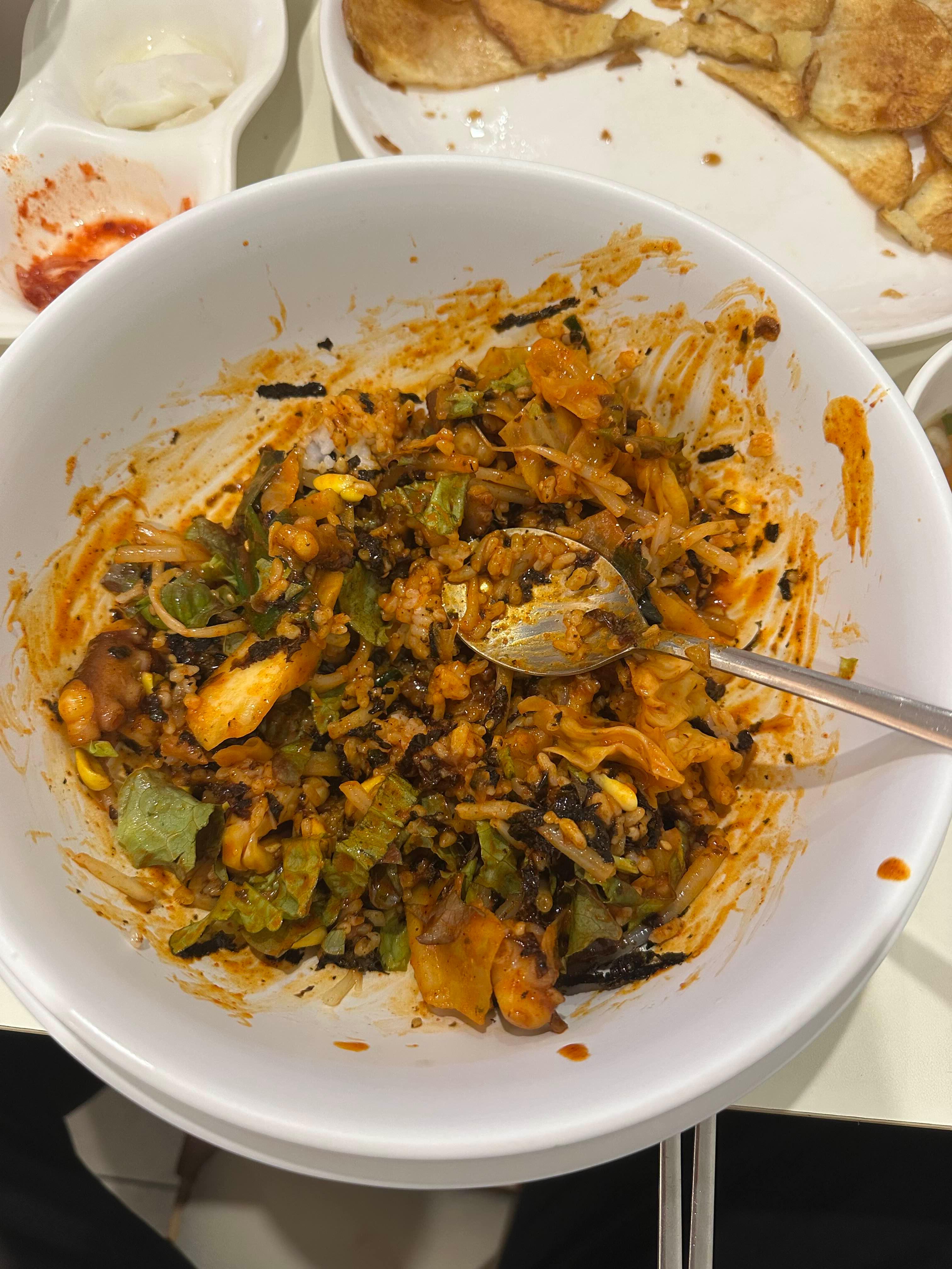 비빔밥은 면 다 먹고 먹어도 좋지만 중간에 칼낙지 소스에다가 비벼서 면과 함께 드시면 좋습니다 개인적으로 저는 저 비빔밥이 더 맛있었습니다