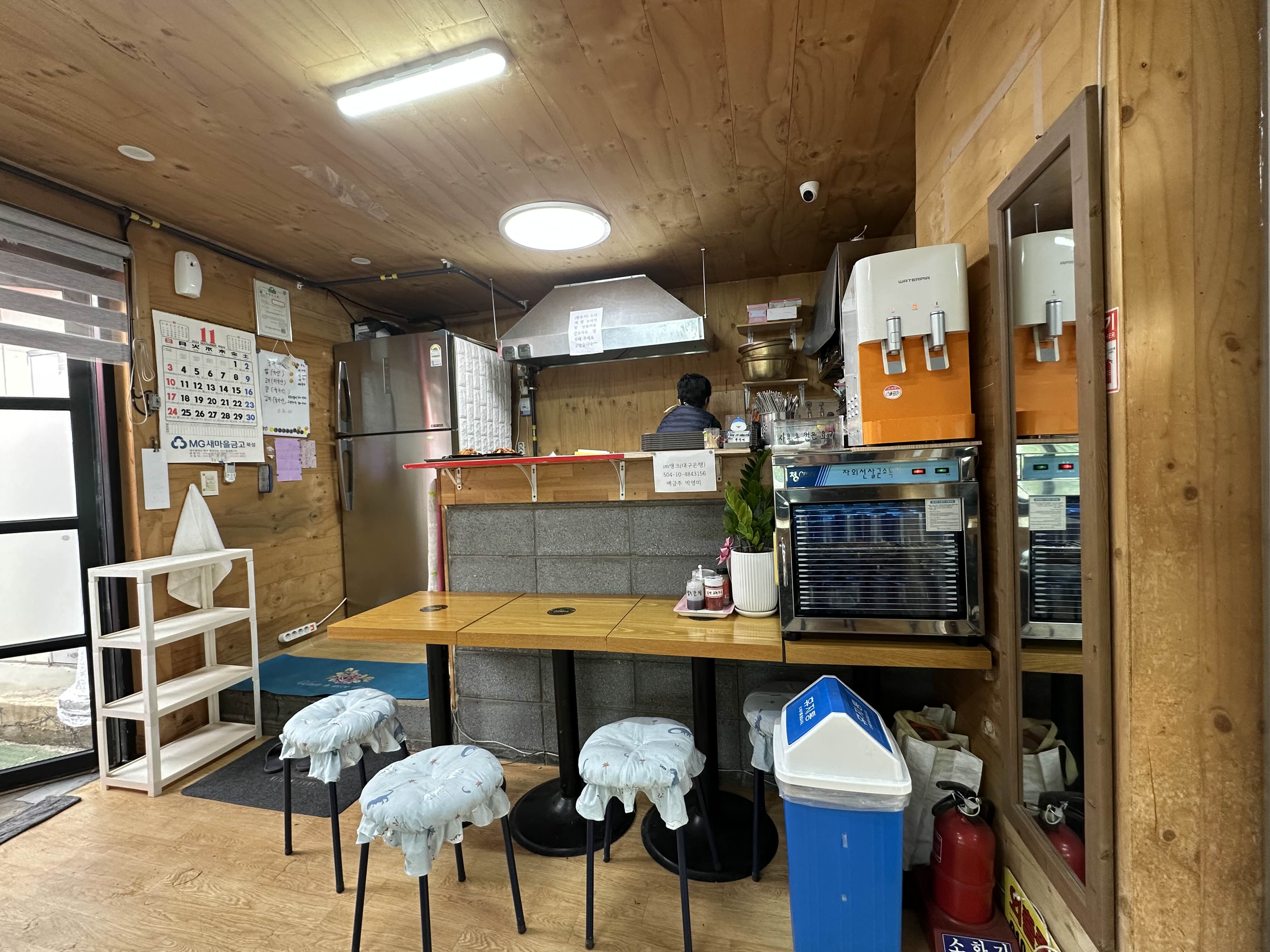 식당 내부 전경입니다 주방도 보입니다 주방에 후드가 있어서 사장님 부를 때 큰소리 또는 직접 가서 말씀하셔야 합니다