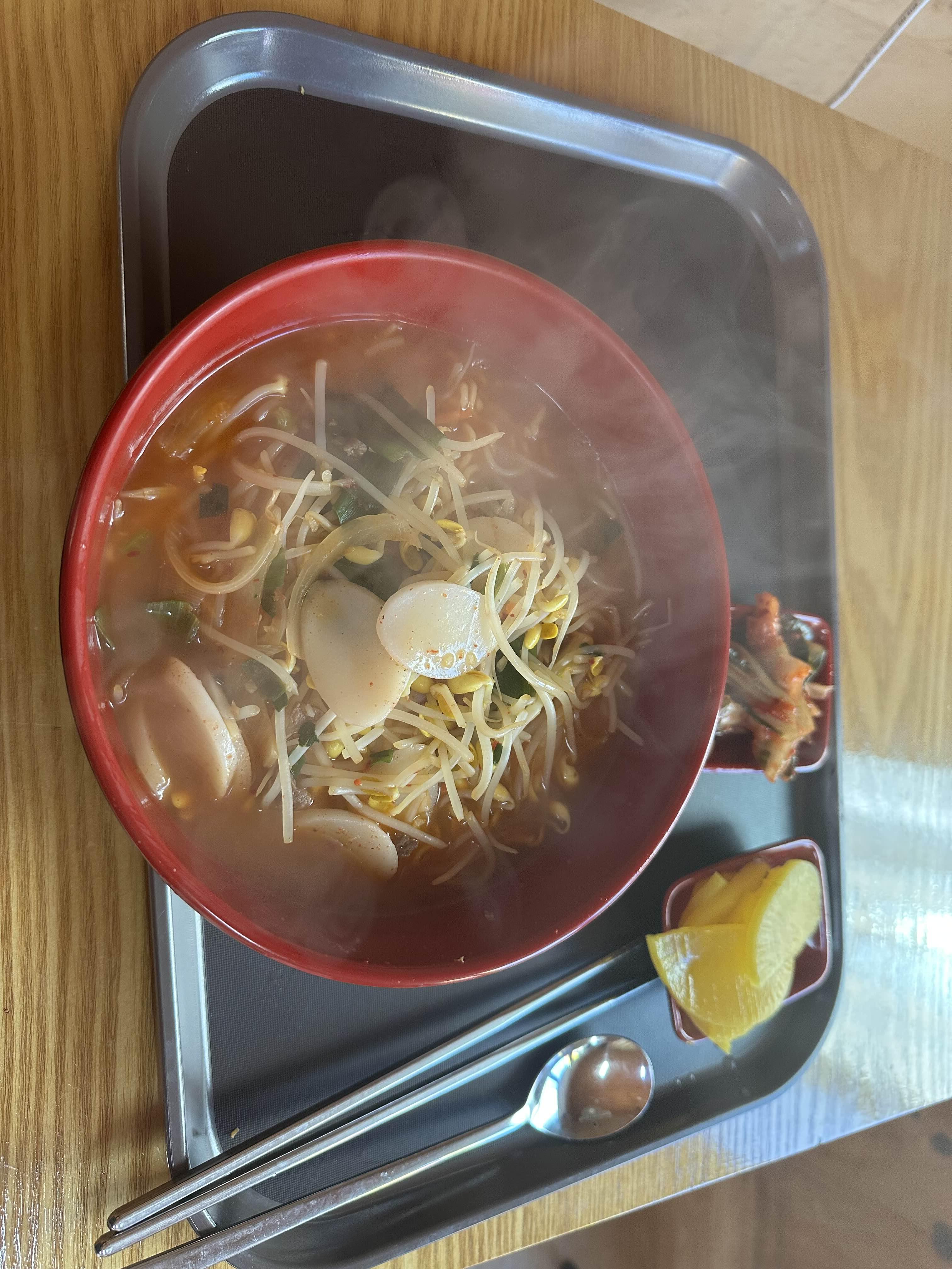 내가 가장 좋아하는 떡라면. 떡이 익으면서 국물이 약간 담백해지는 게 좋더라고요 콩나물도 듬뿍 있어서 시원합니다 먼저 국물로 속을 진정시키고, 떡 몇 개 먹으면서 맛을 음미하다가 면치기 들어가면 땀이 주르륵 ~ 해장 완료 입니다