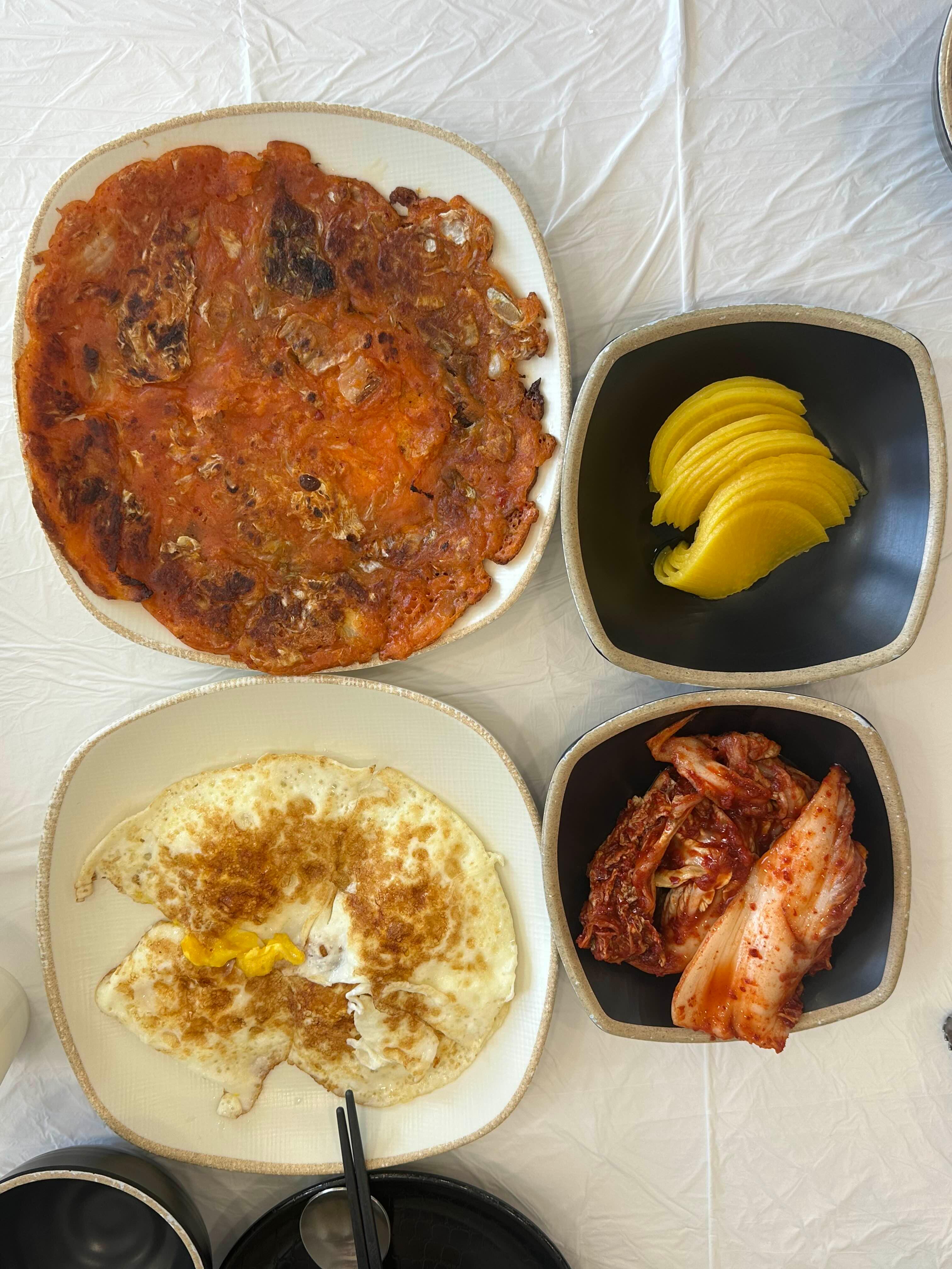 (김치전, 계란 프라이)