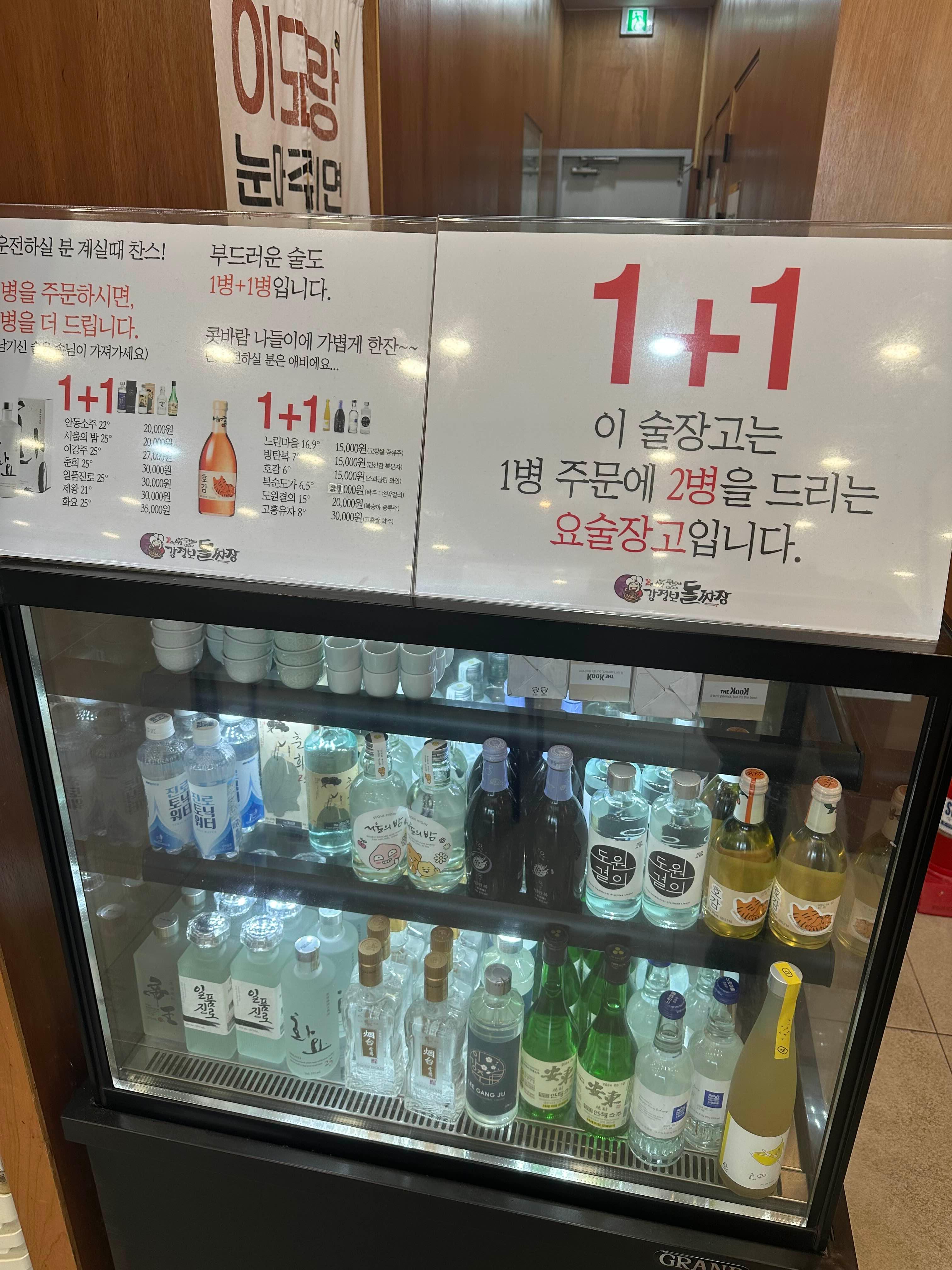 식당 내부에 보면 사장님의 센스 넘치는 문구들이 있습니다 술을 시키면 1+1이라네요 ㅎㅎ 술은 안 먹을 것 같지만