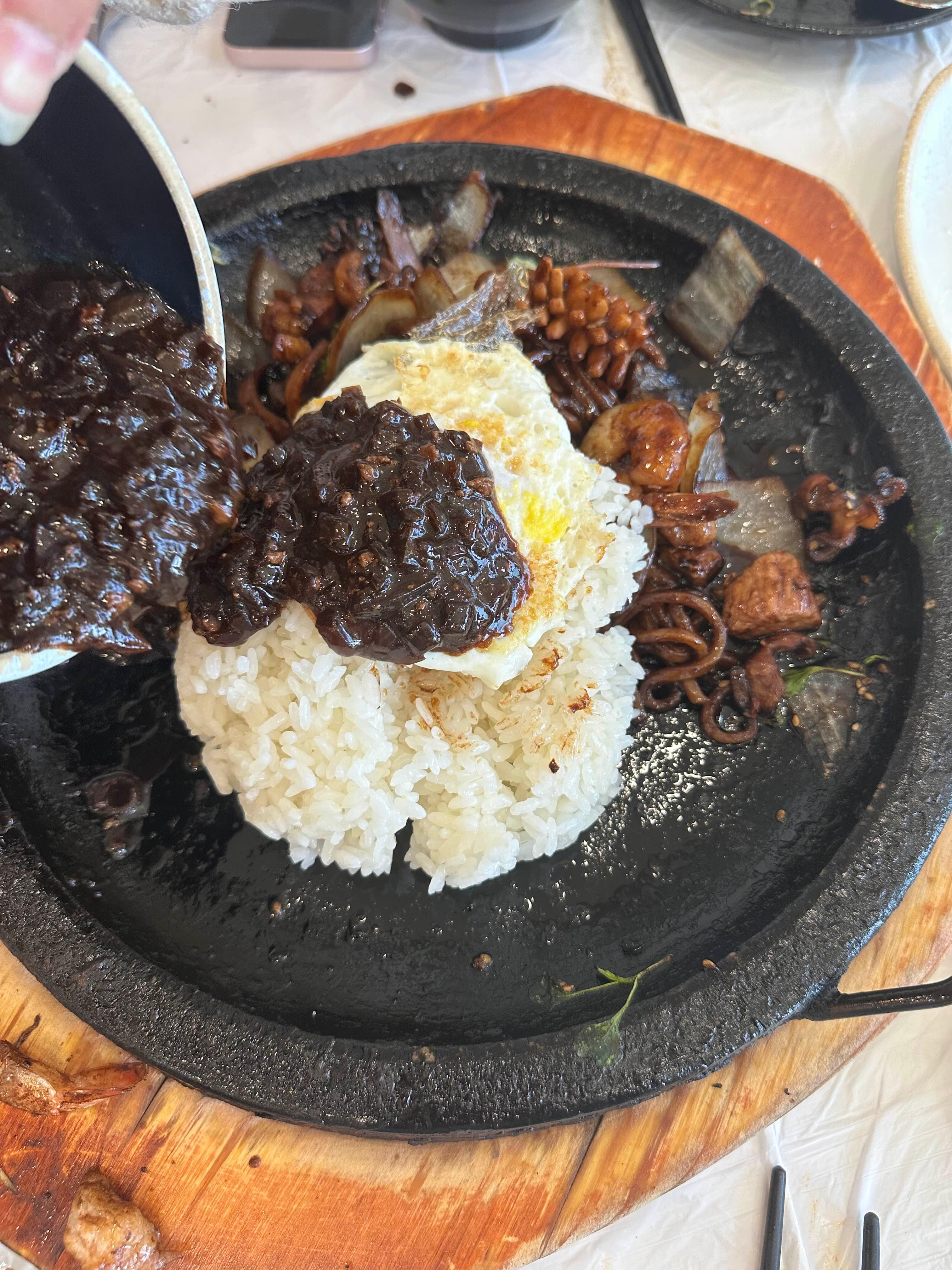드디어 나온 돌짜장 ㅎㅎ 돌짜장은 2-3인용이 중 자이고요 가격은 28,000원입니다 대 자는 35,000원입니다
