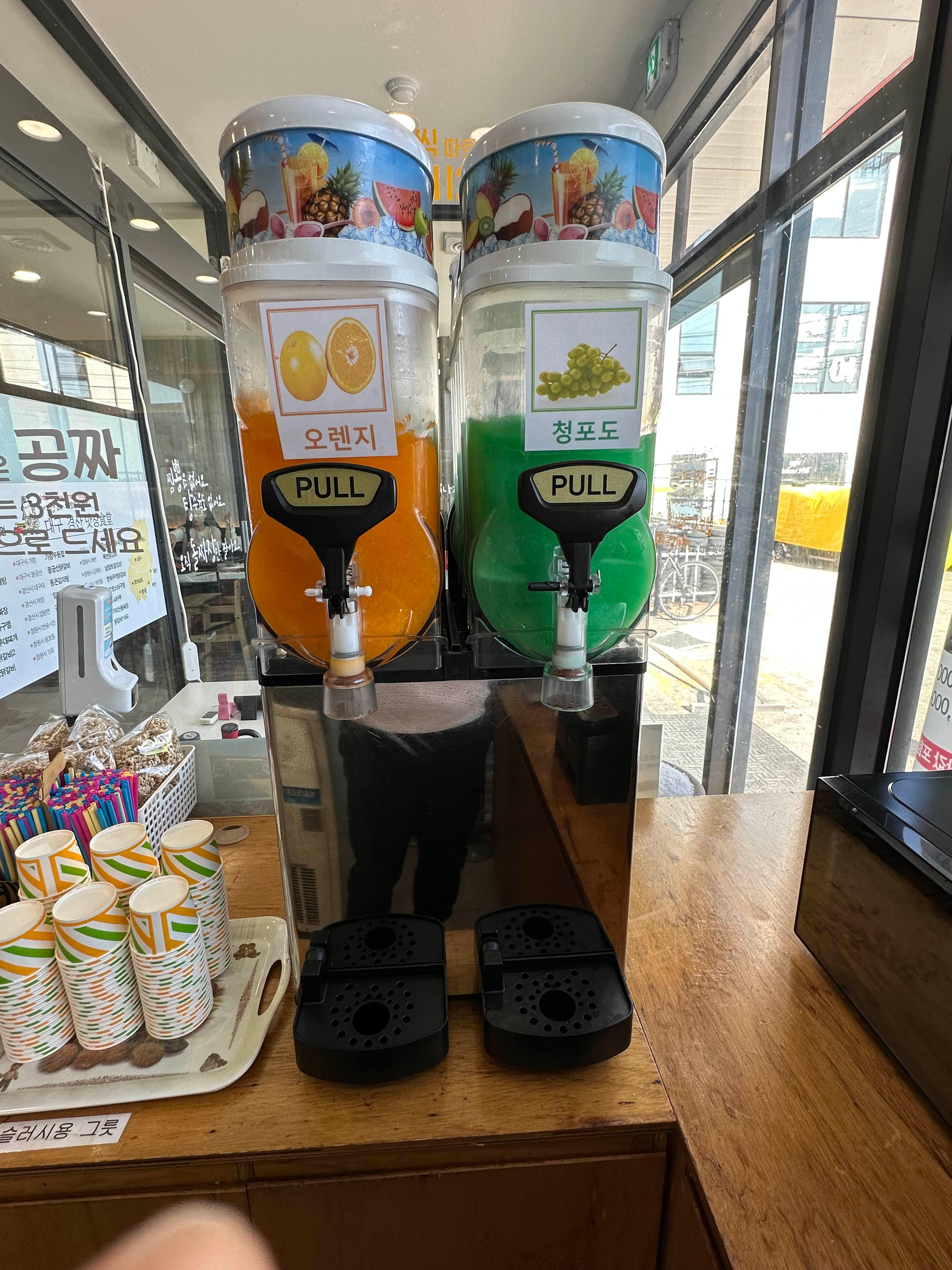 그리고 이 슬러시 ㅎㅎ 여름에는 사람들이 엄청 먹어서 조금 부족했는데요 ㅎ 겨울이라 그런지 많네요 ㅎㅎ