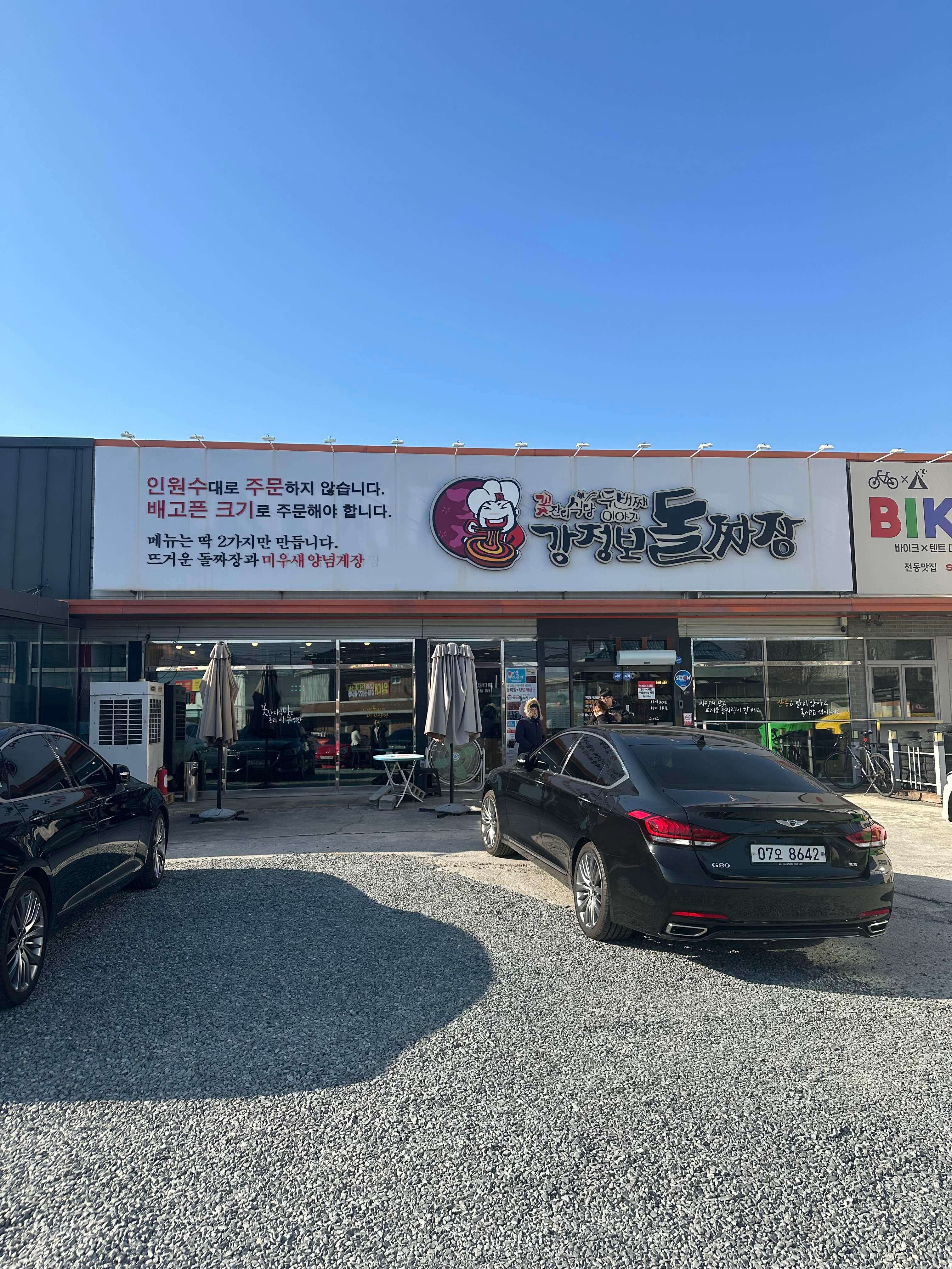 1월 1일 가족과 함께 뭐 먹을까 고민하다가 돌짜장으로 향합니다 ㅎㅎ 가게 옆에 자전거 대여점과 곤드레밥 파는 식당도 있습니다 가게 전경입니다