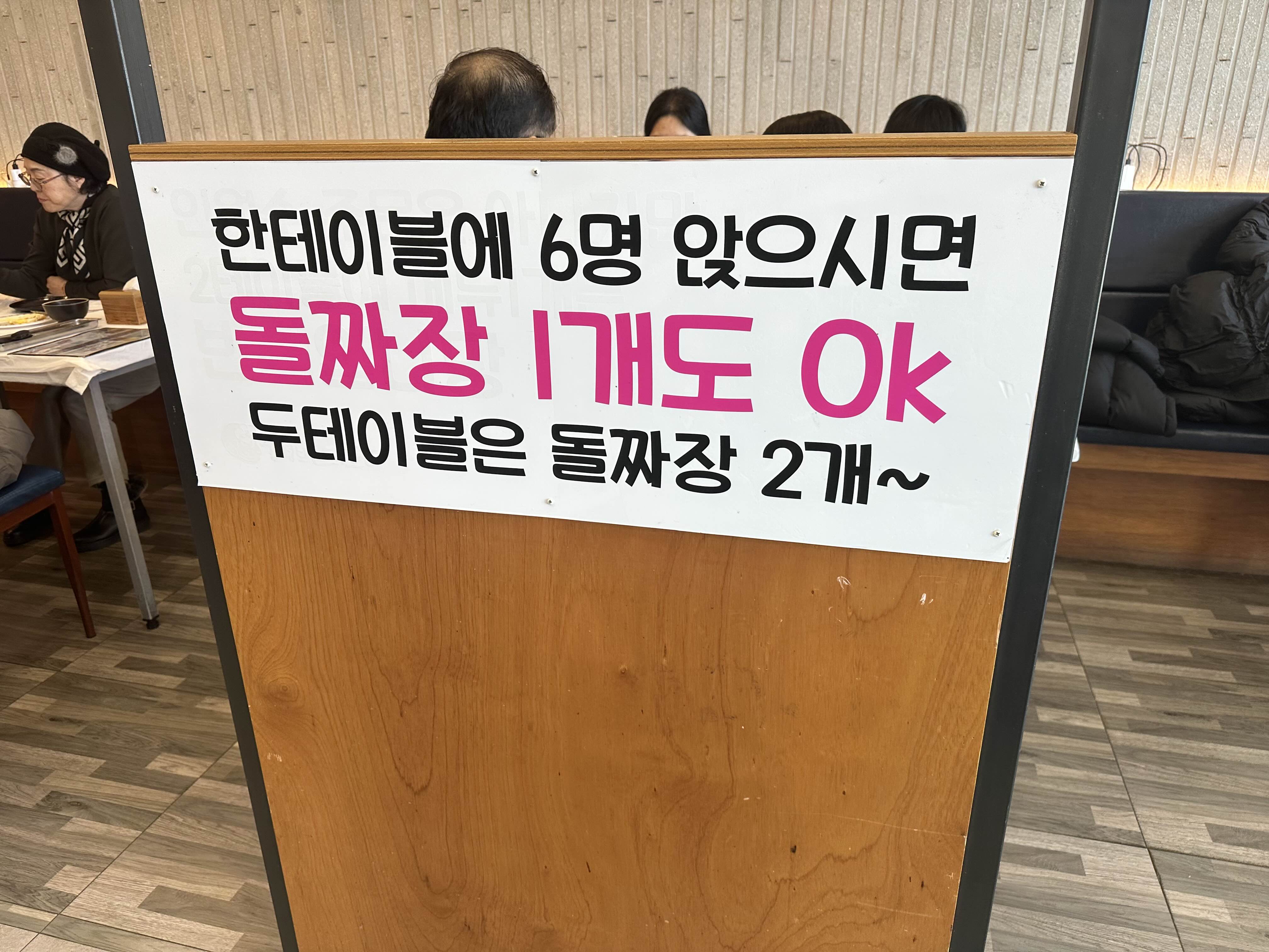 테이블당 1 메뉴 주문을 이렇게 돌려서 ㅎㅎ 무슨 말인지 좀 헷갈렸습니다(첨엔 인원수 상관없이 시키세요로 받아들였습니다 ㅠㅠ 빌어먹을 난독증)