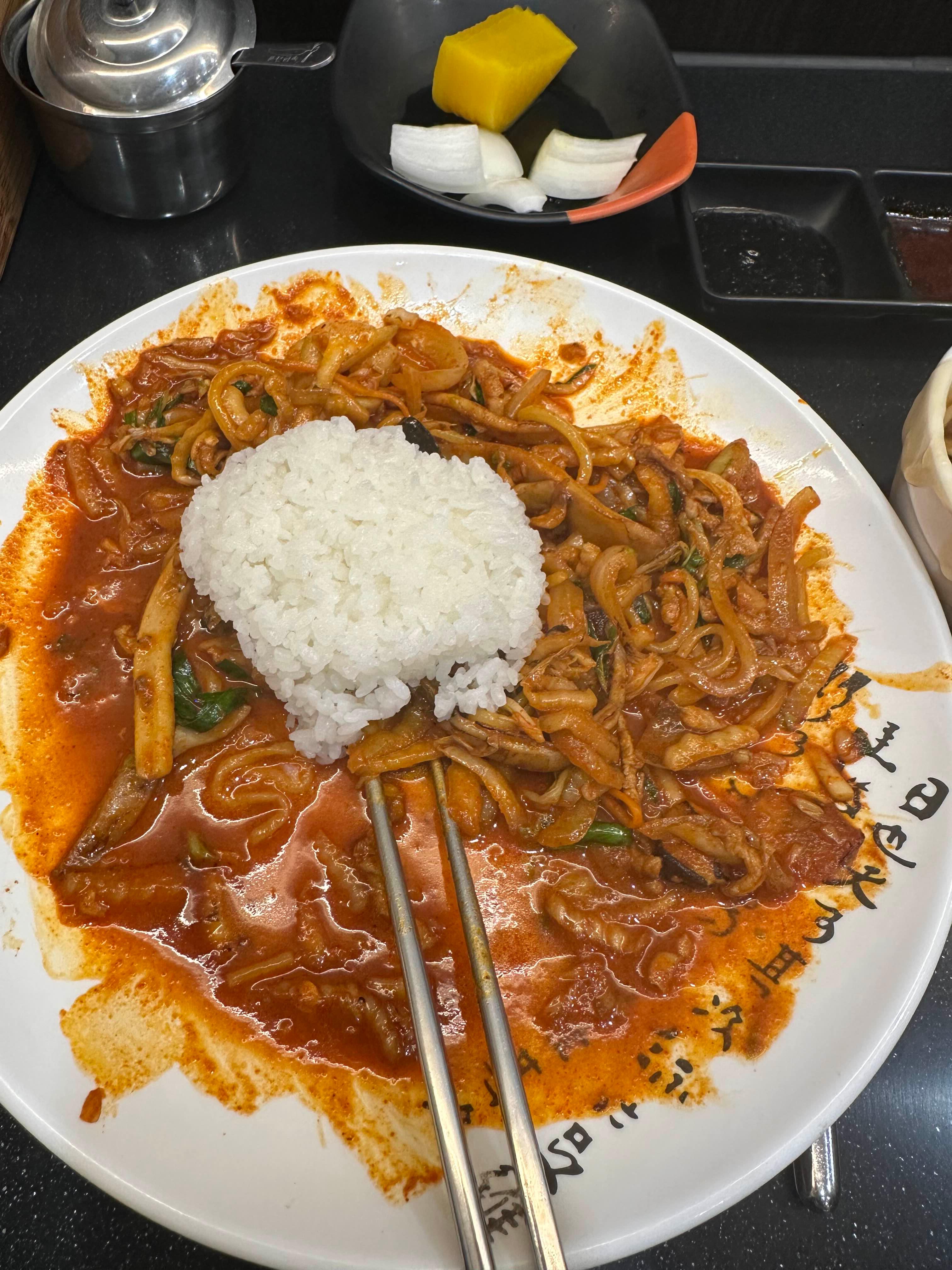 먹다가 보면 또 맛있는 양념이 남아 버리게 됩니다.. 오늘도 남은 소스에 밥을 비벼야겠죠?? 개인적으로 면의 양이 줄어야 밥을 충분히 비벼 먹을 수 있을 것 같습니다