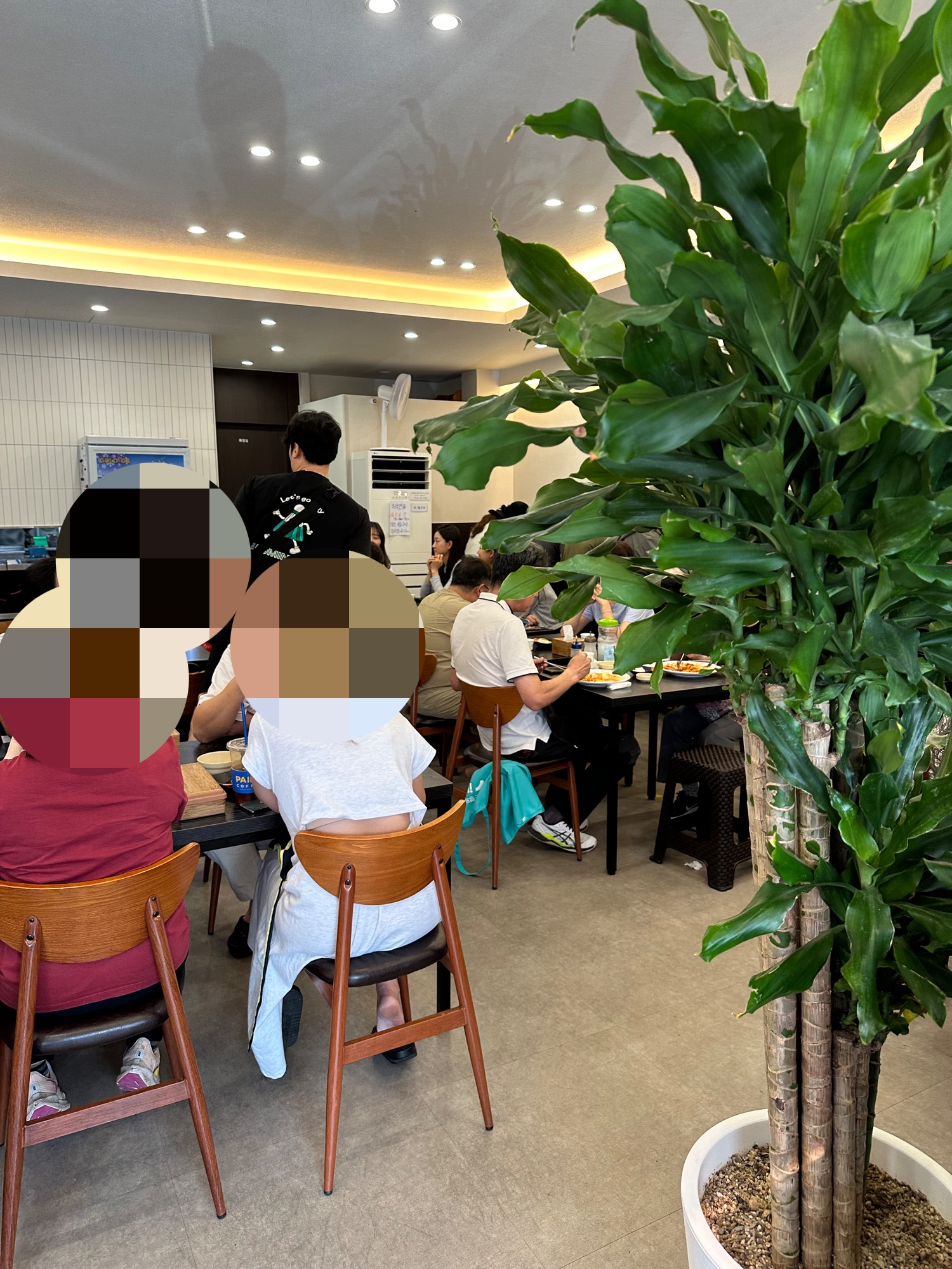식당내부 전경입니다 예전과 다르게 한 줄 테이블이 있더라고요 우리도 벽 쪽에 자리 잡았습니다