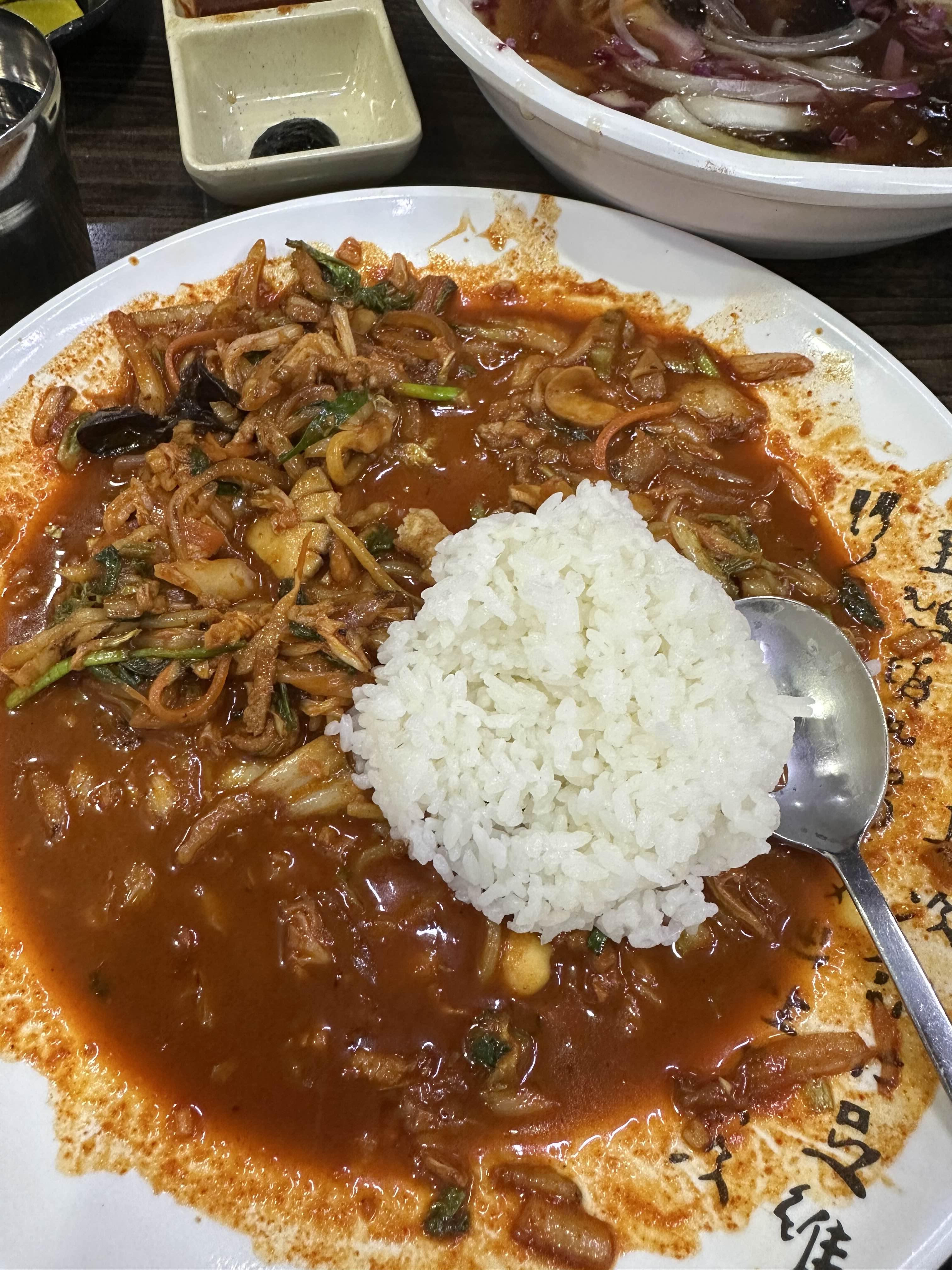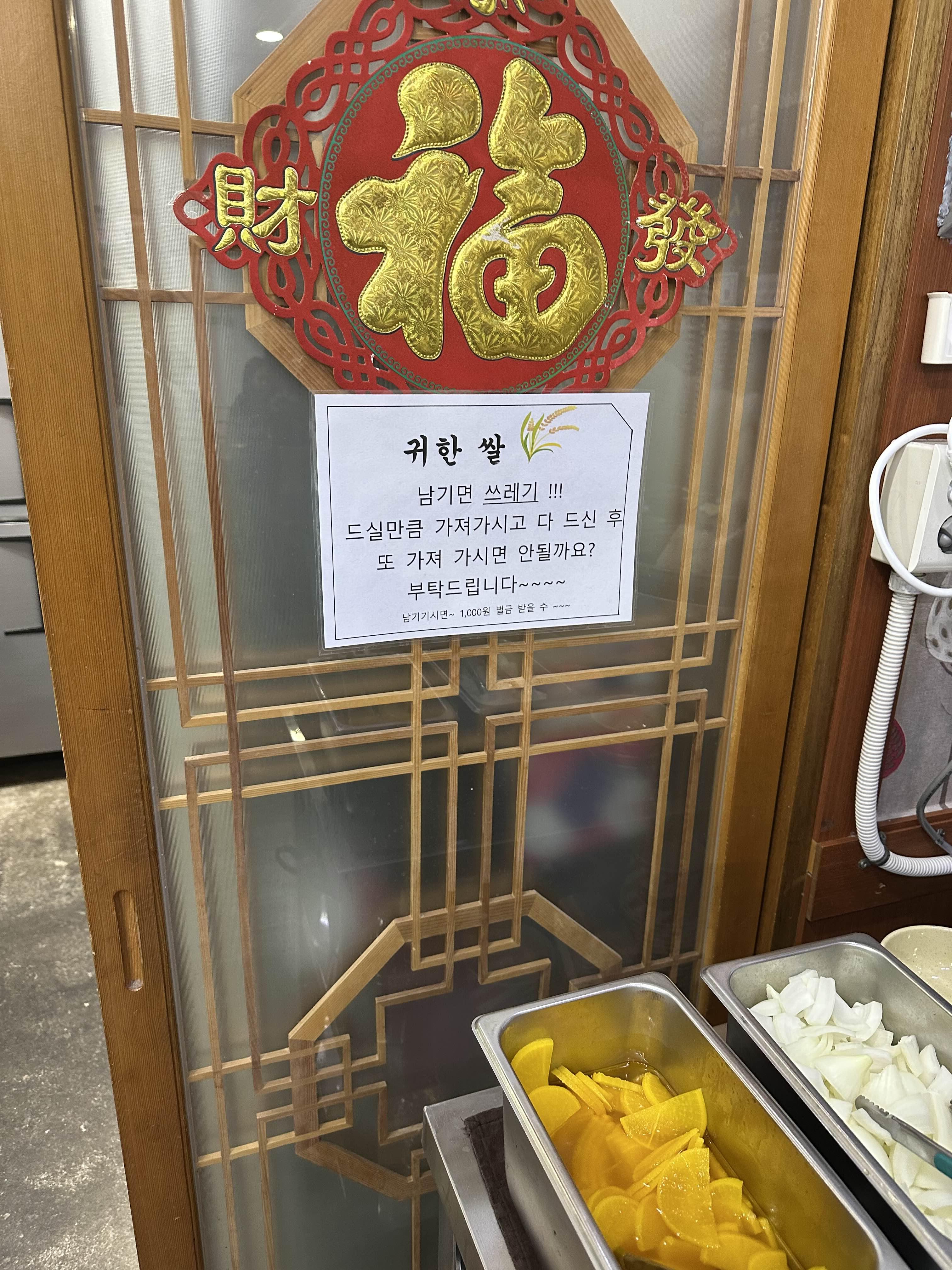 식당 한켠 단무지, 공깃밥 셀프로 드실 수 있게 해 놓았습니다. 야끼우동, 짬뽕 드시고 밥 조금 비벼 드시면 또 다른 감동이죠 ㅎㅎ 저는 물론 비볐습니다ㅋㅋ 남기면 1000원 벌금이니 먹을 만큼만 뜨셔요 ㅎ