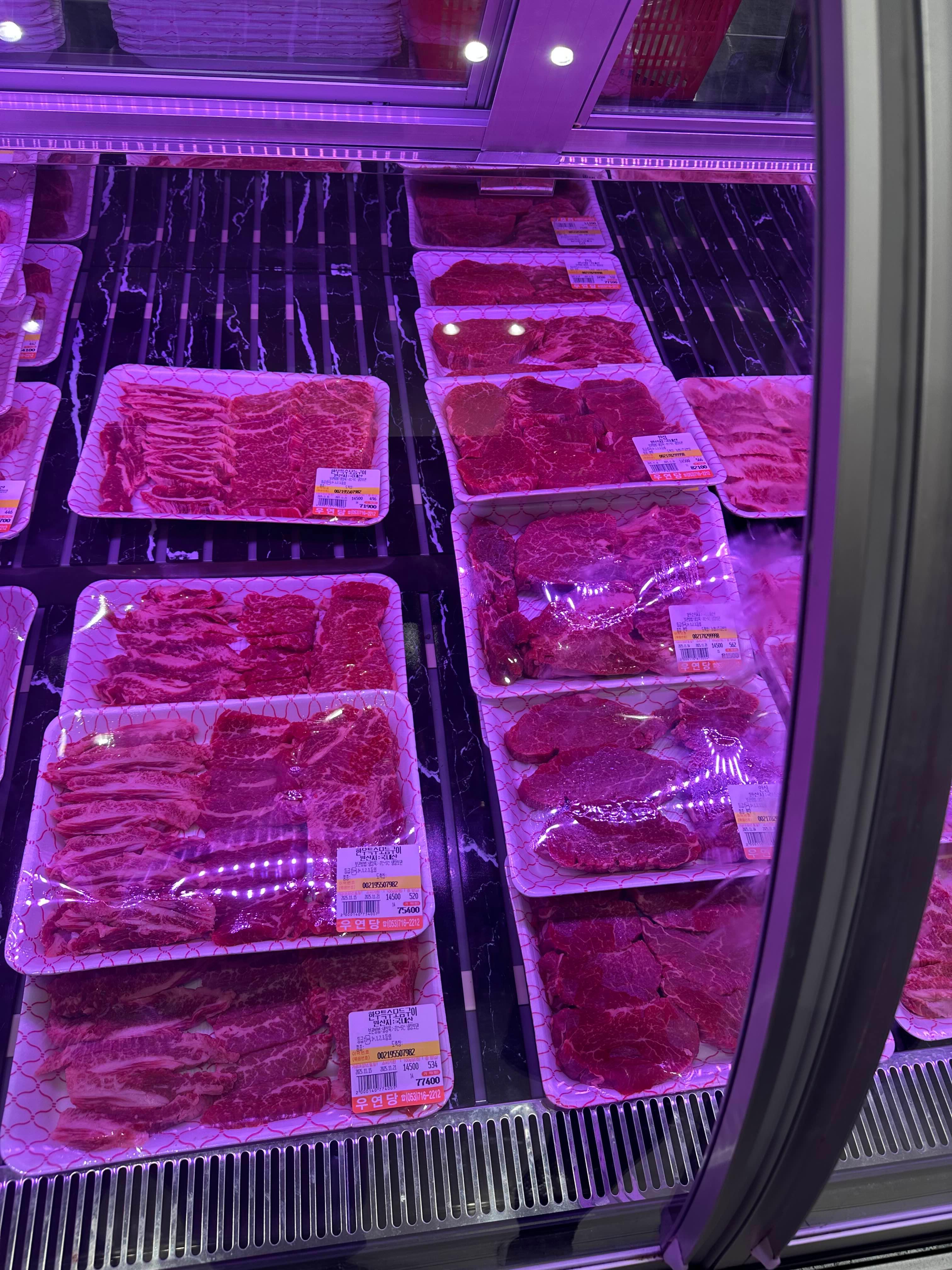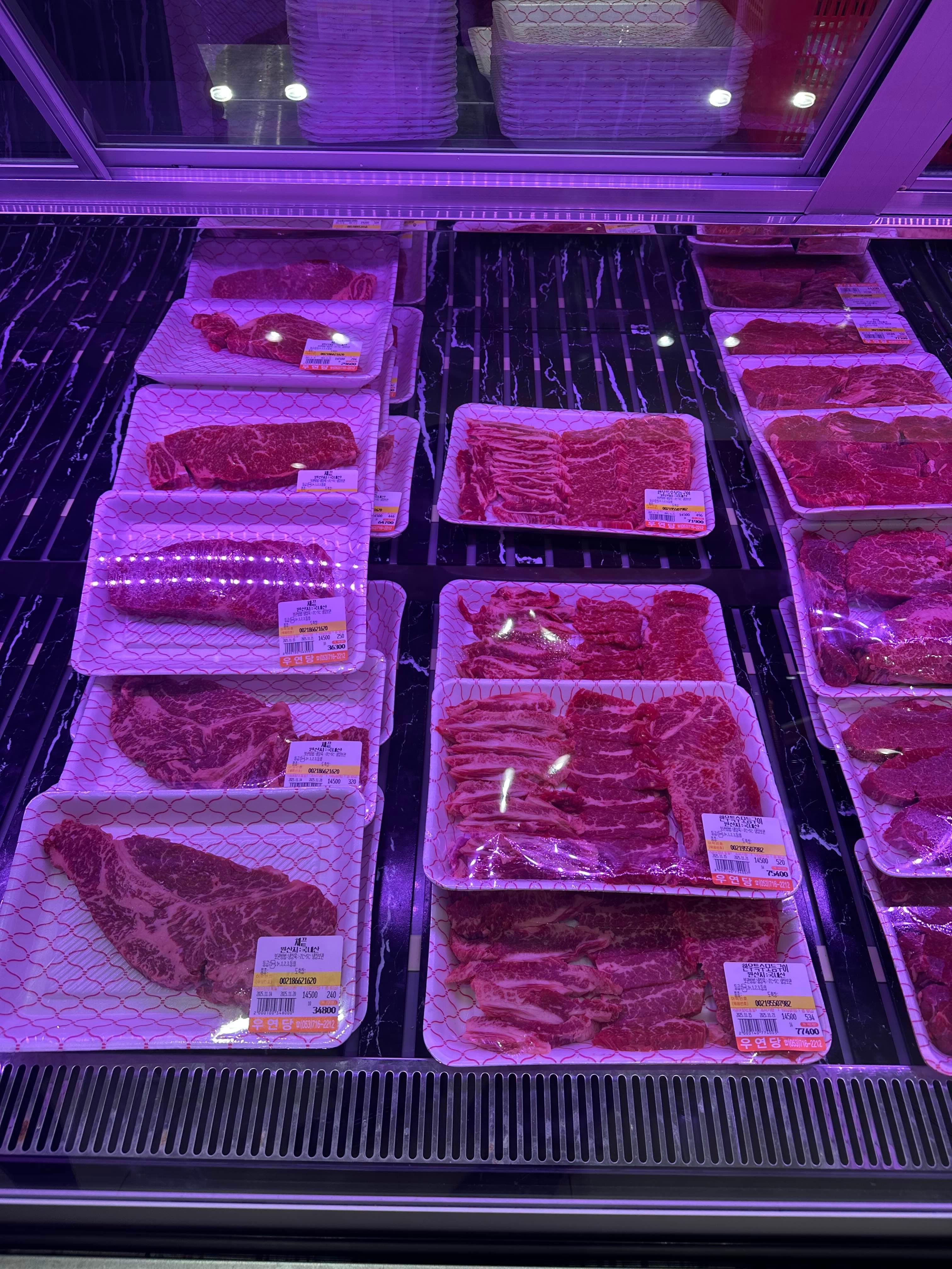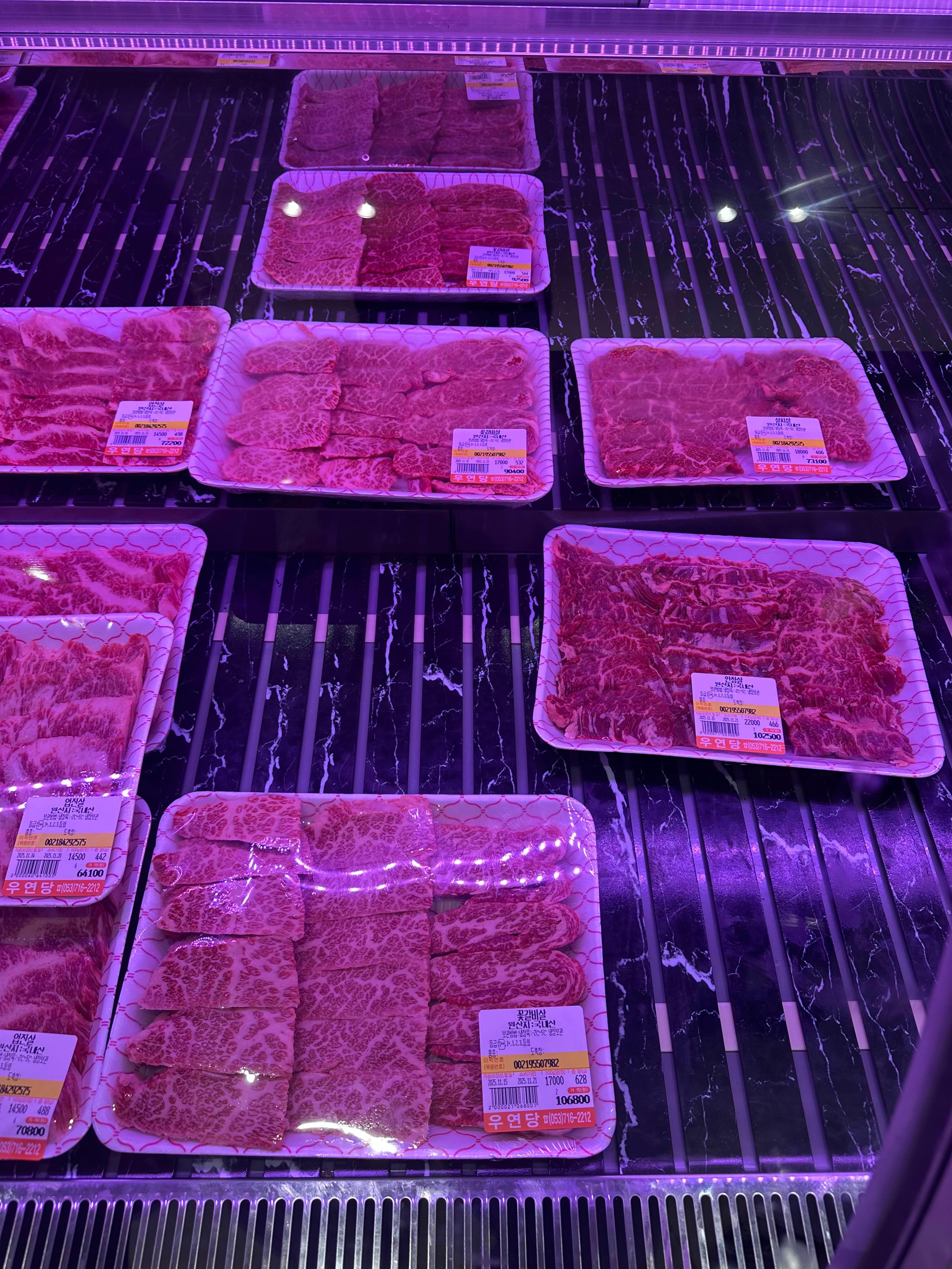 자리를 잡고 고기를 고릅니다 조근 늦게 가서 그런지 가성비가 좋은 1+ 등급의 등급의 고기는 다 나가고 1++ 등급의 고기만 남았습니다