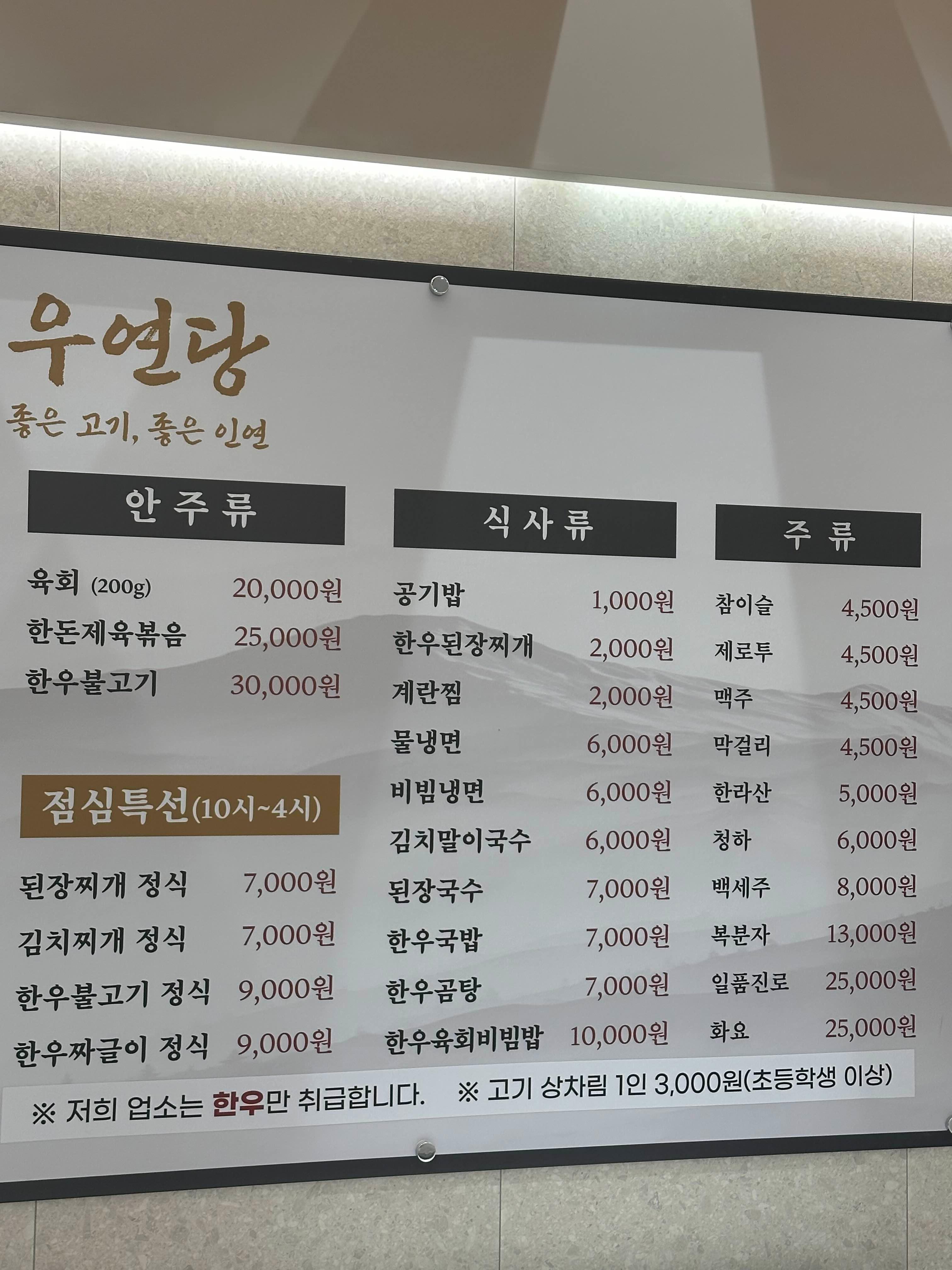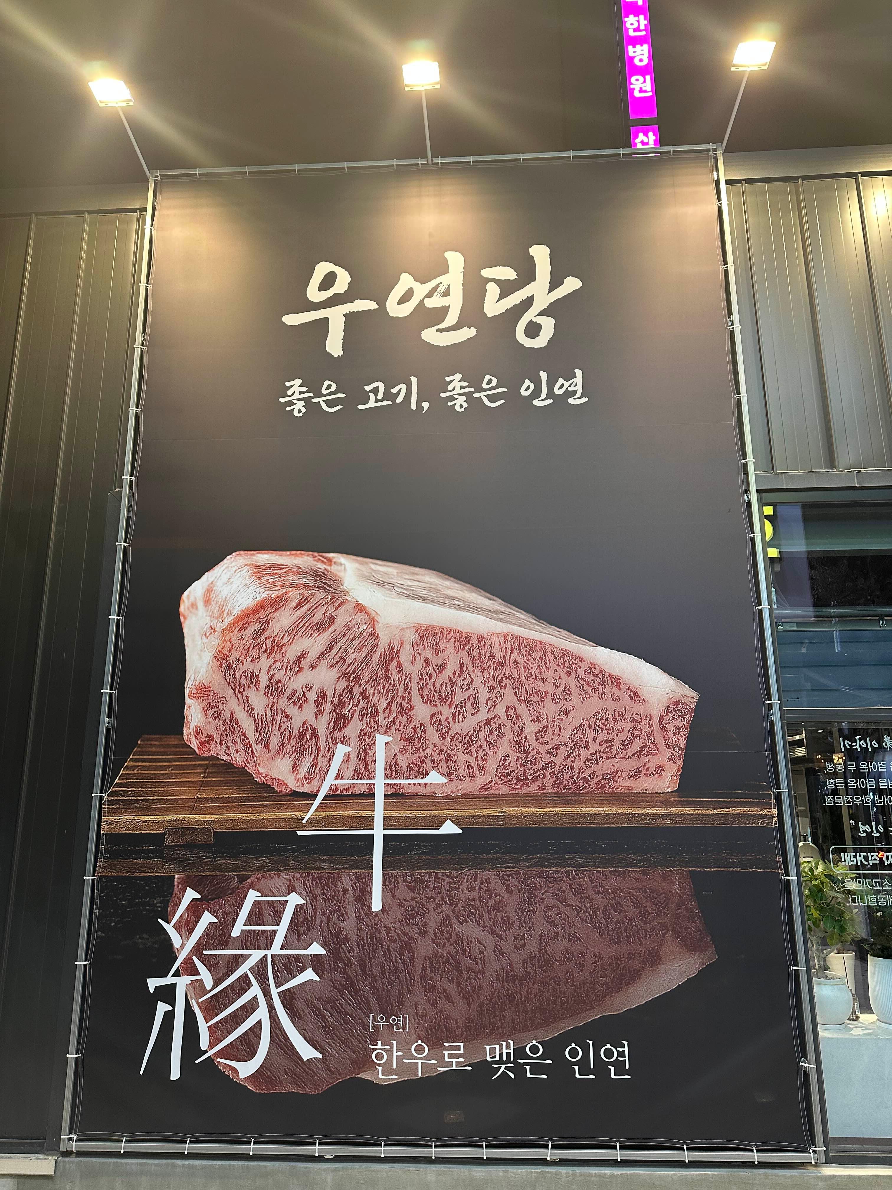 좋은 소고기, 좋은 인연이 만나는 식당이라는 의미인 우연당인 것 같습니다. 가게 상호가 쫌 감동 ㅎㅎ