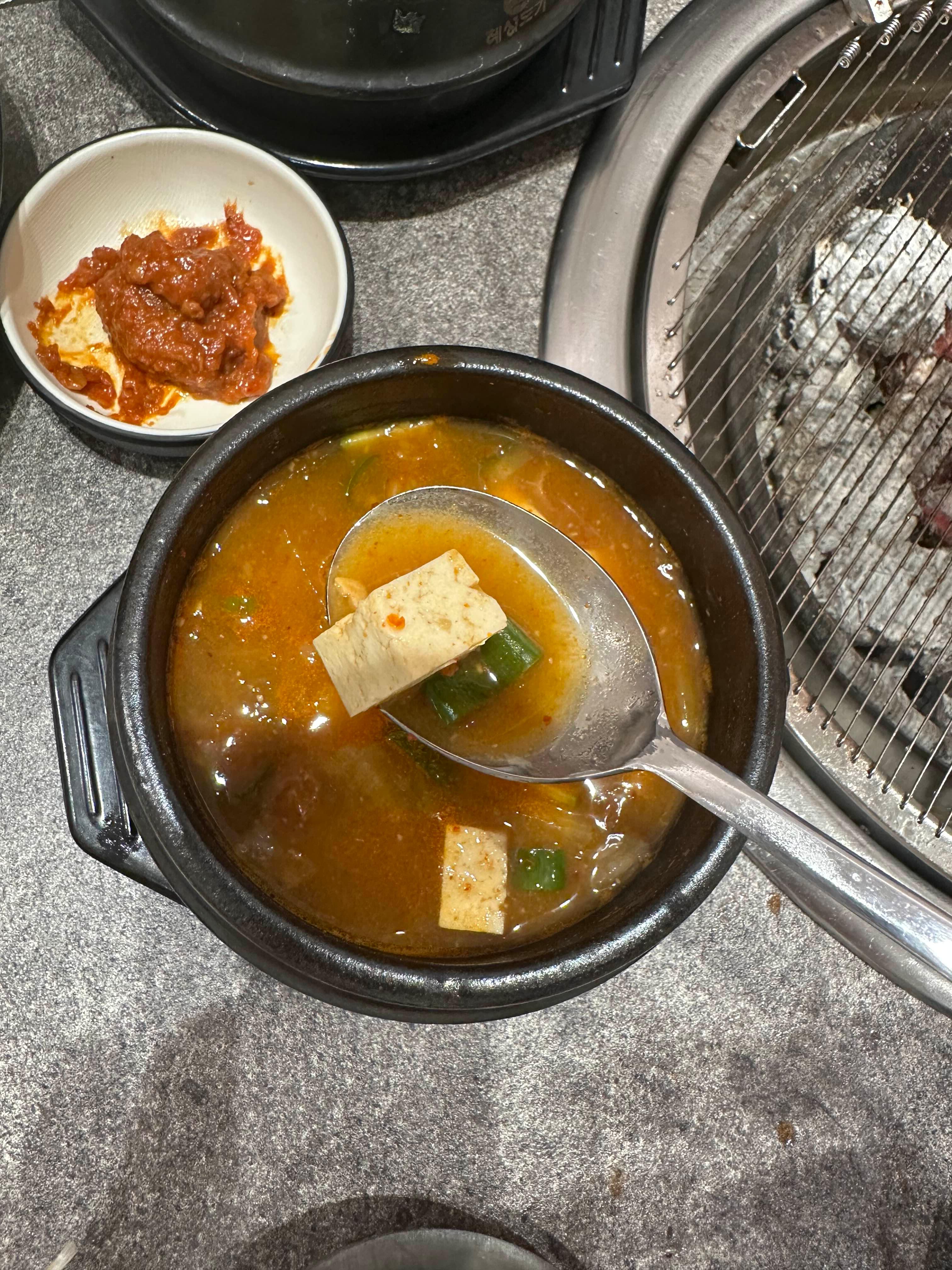 후식으로 된장찌개를 시켰습니다 ㅎ 깔끔한 맛의 찌개입니다
