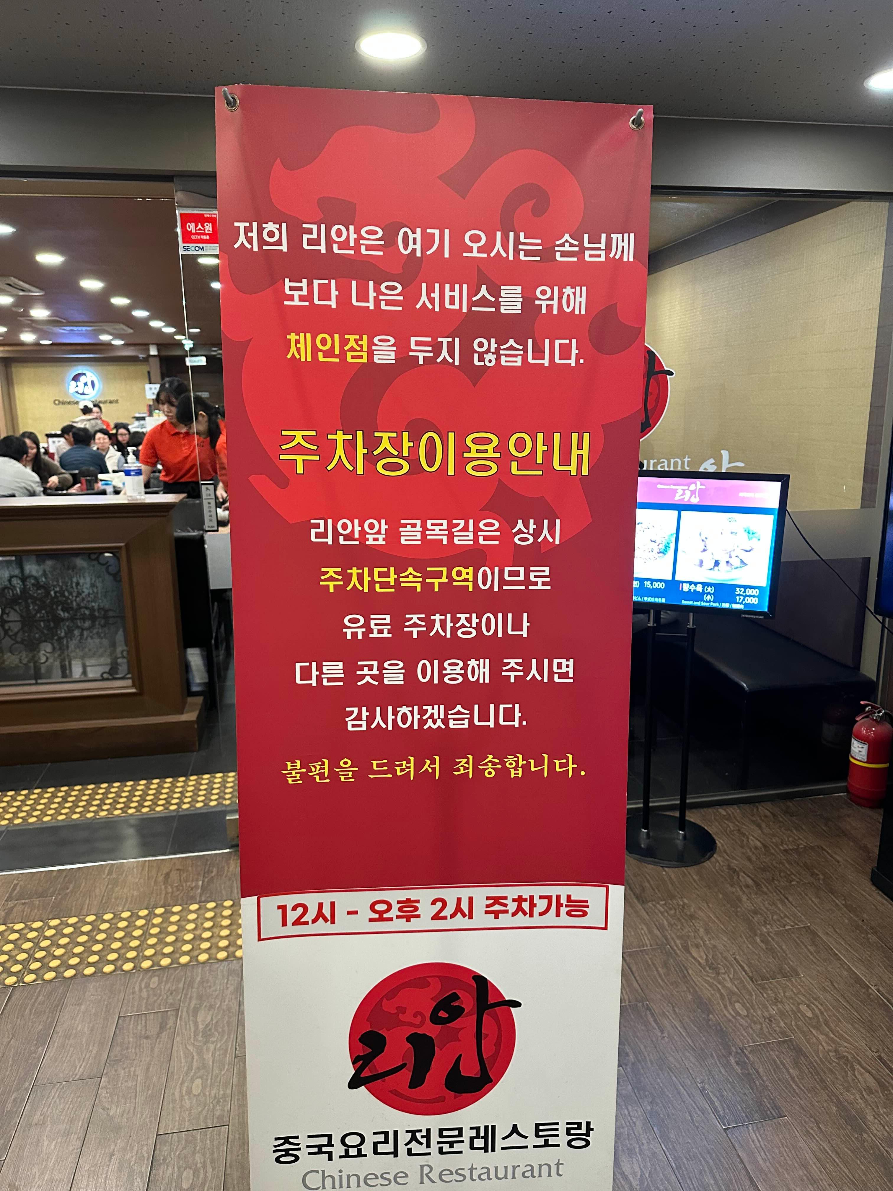 식당 앞에 주차해도 될 것 같은데 상시 주차단속 구역이라는 글이 적혀 있습니다 주차장에 대시는 거 추천!!