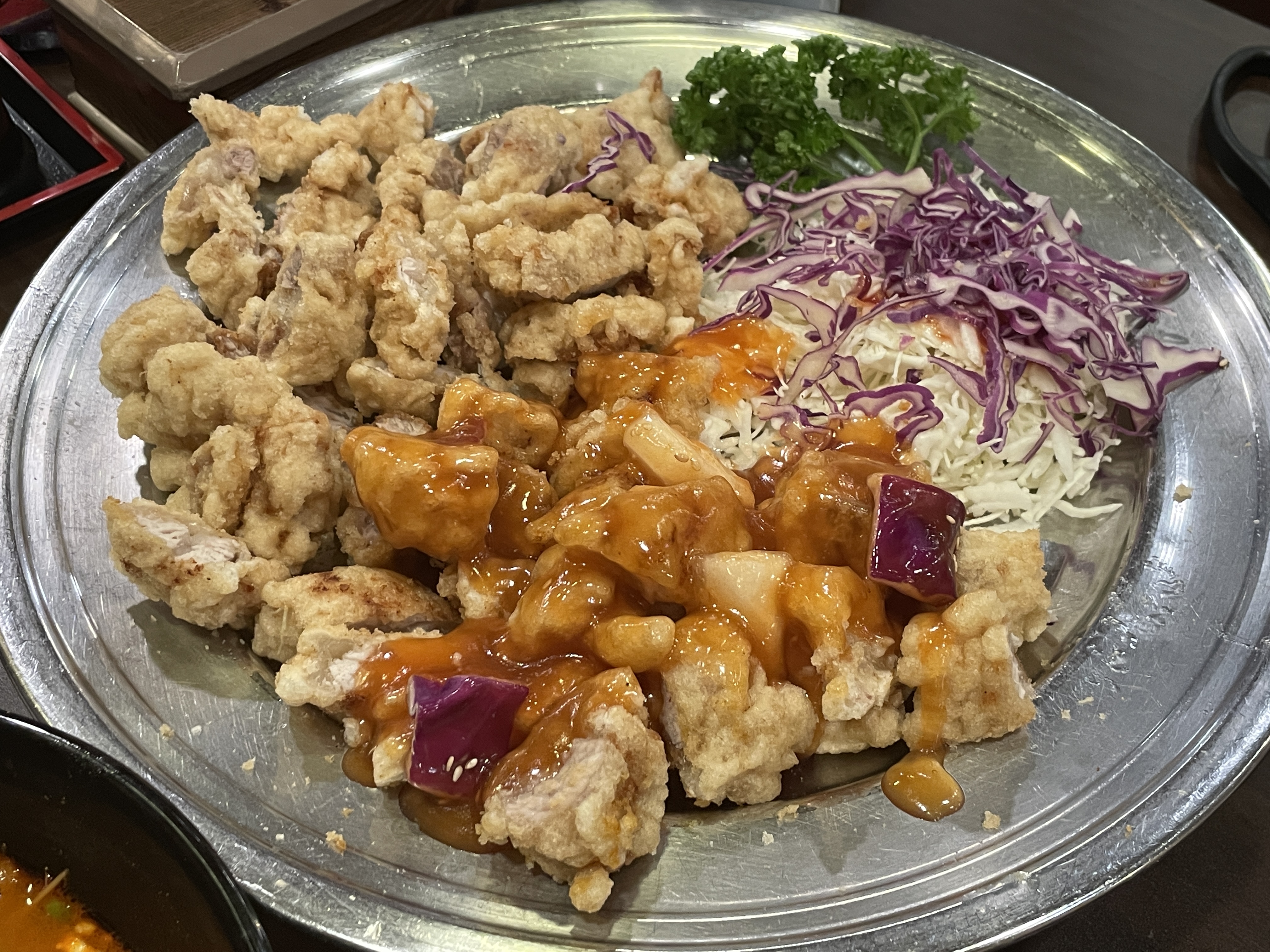 탕수육 소 입니다 원래 덩어리로 나오는데 사진 찍는 걸 깜빡 ㅎㅎ 17,000원인데 양이 상당하고 바삭바삭하고 소스도 옛날 소스 맛이었습니다. 다소 튀김옷이 두껍게
