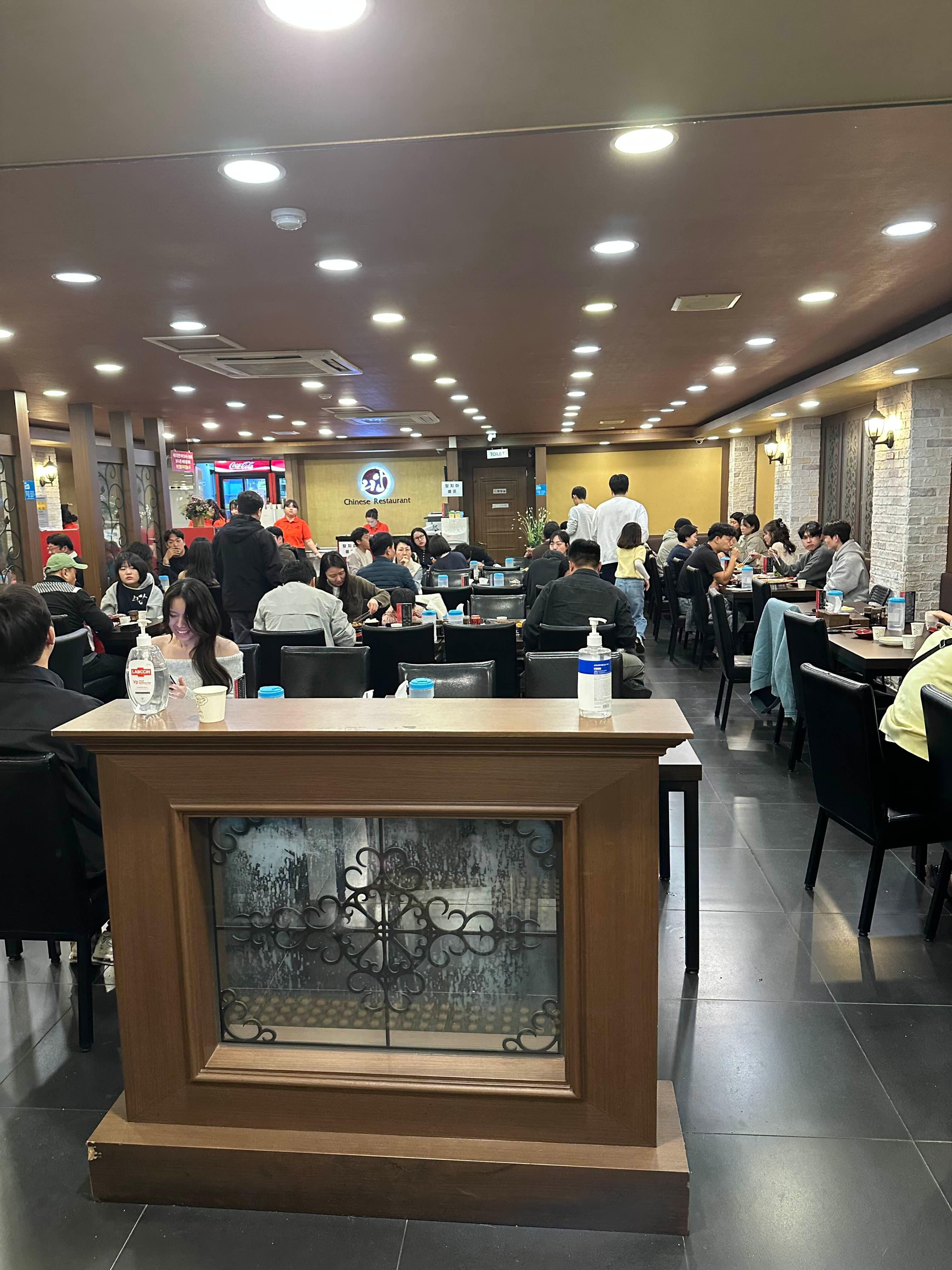 식당 내부입니다 만석입니다... 인테리어는 깔끔한 편입니다