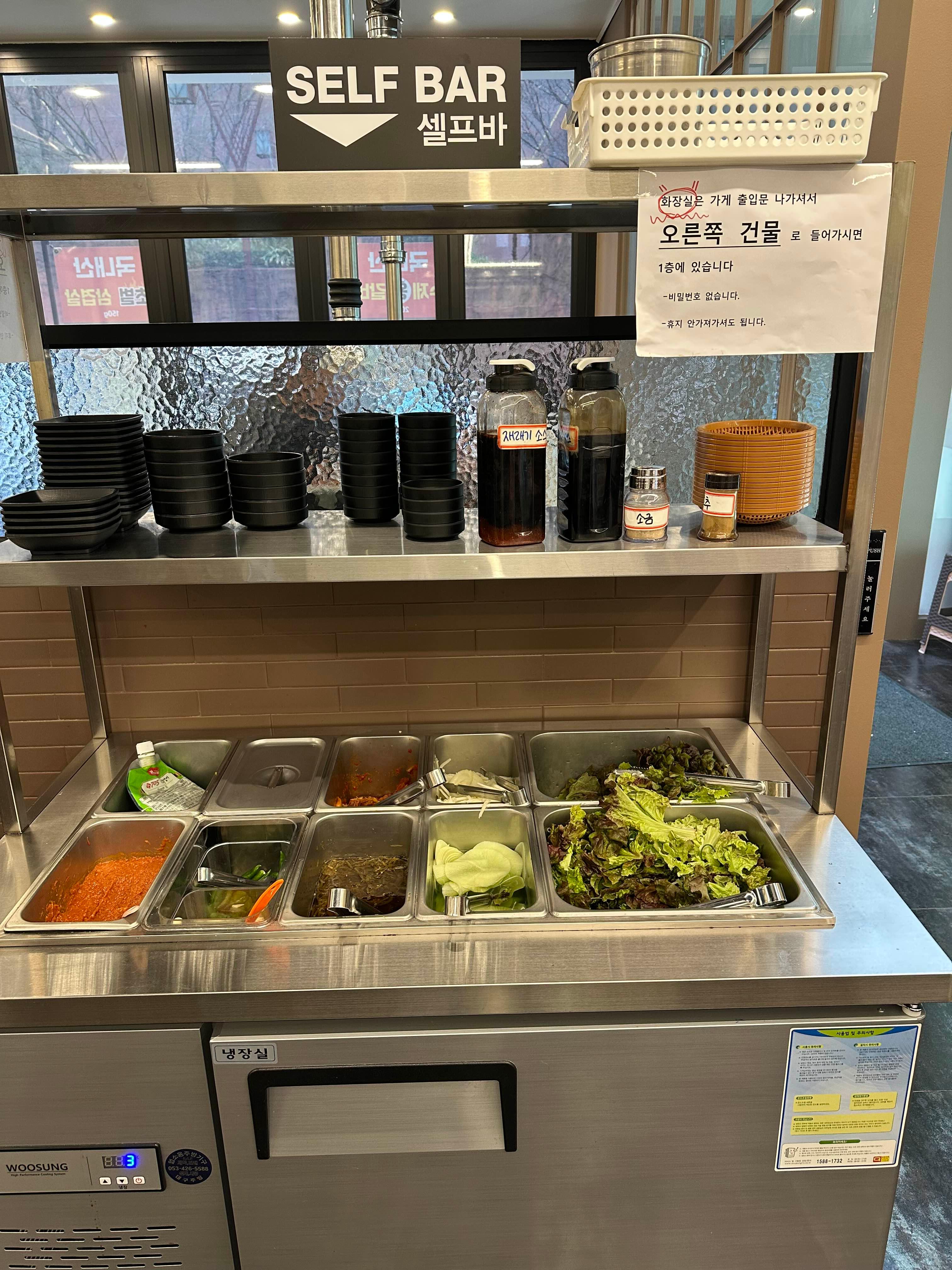 셀프바가 따로 마련되어 있습니다 야채쌈과 장 등 단출하게 구성되어 있습니다