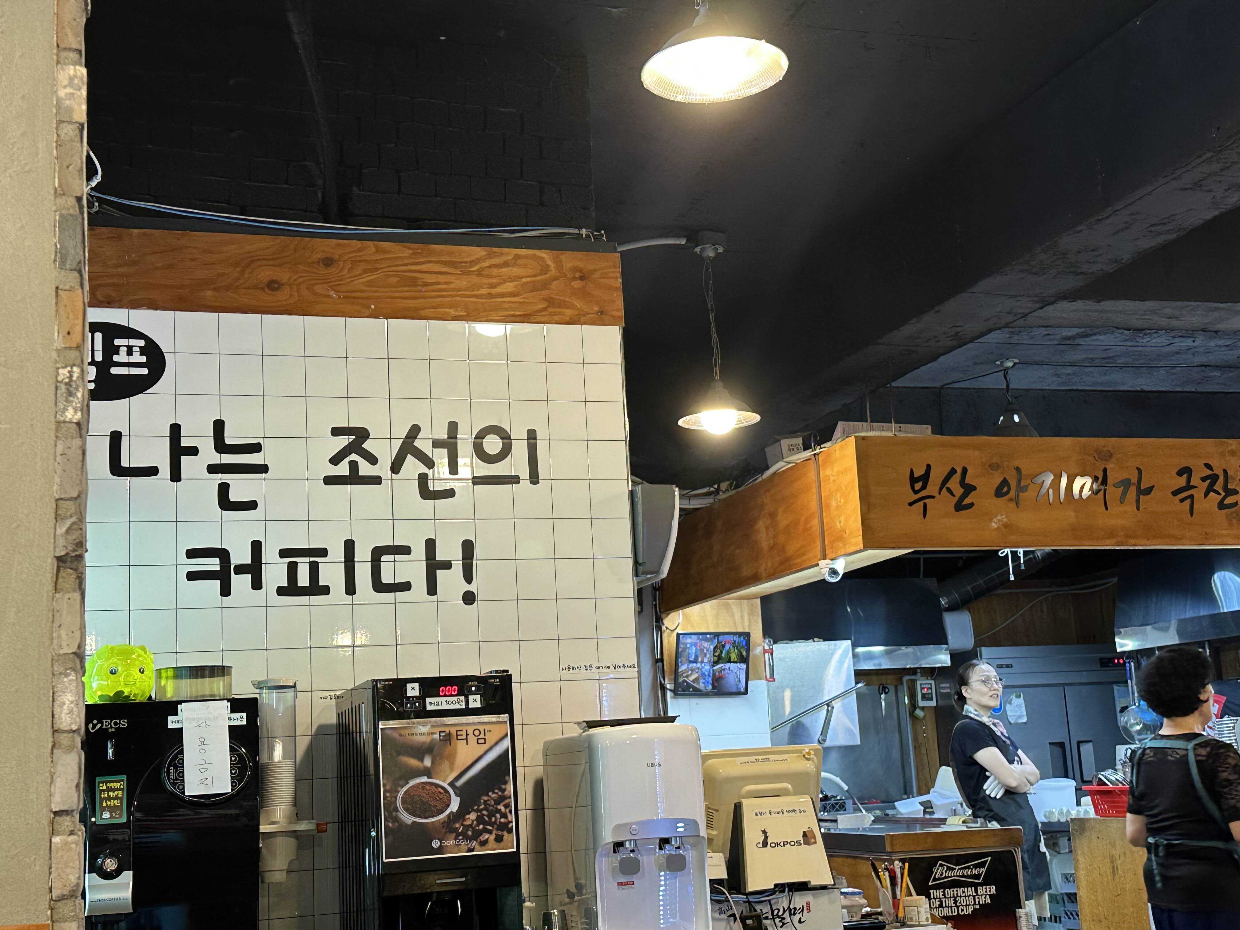 커피도 있습니다 100원이라고 쓰여있긴 한데 먹어보지 않았습니다(다른데도 100원 되어 있지만 안 받는 식당 많았습니다)