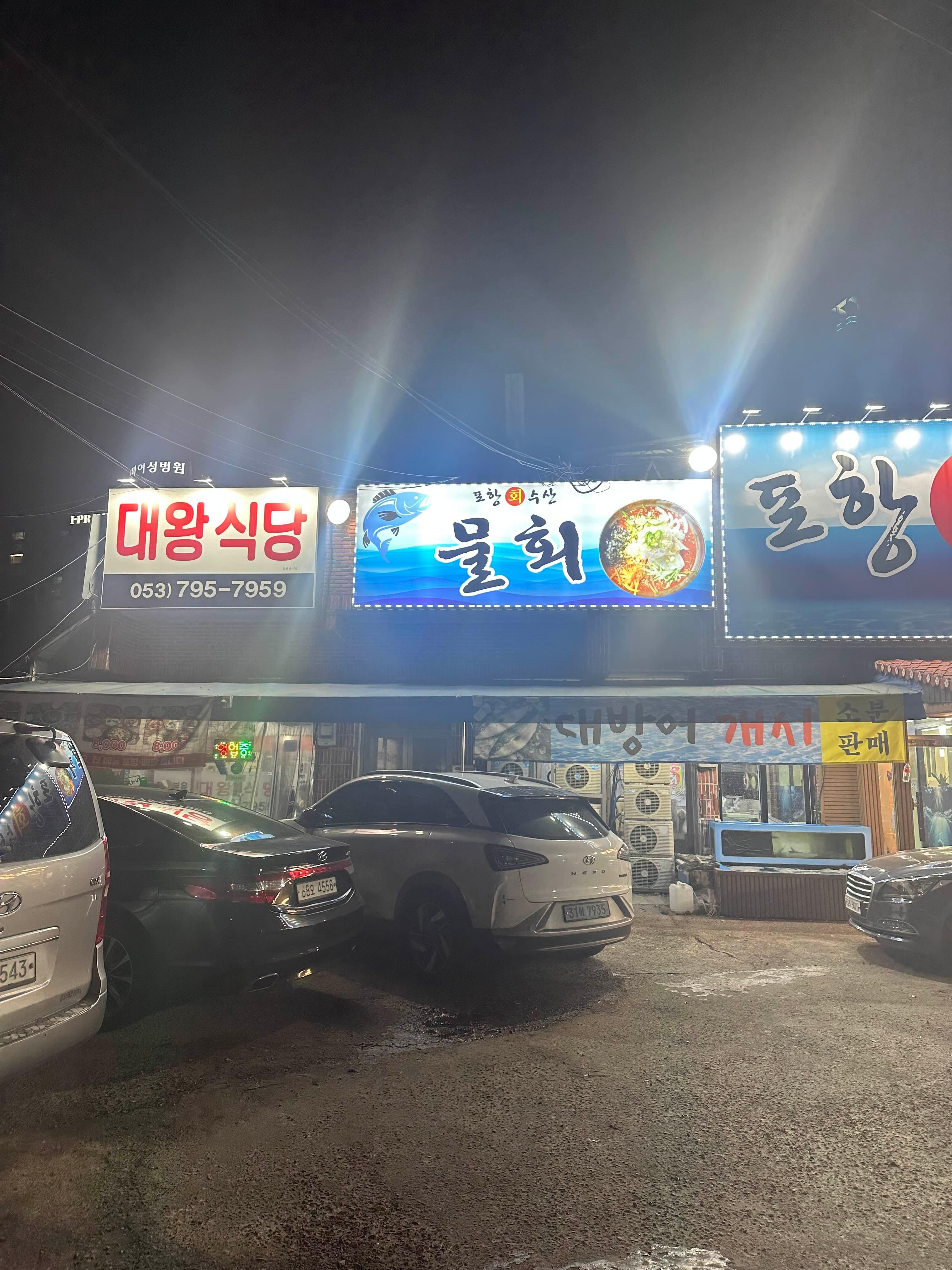 식당 전경입니다. 식당 앞 주차장이 있고요.. 포항 횟집 옆에 위치하고 있습니다.