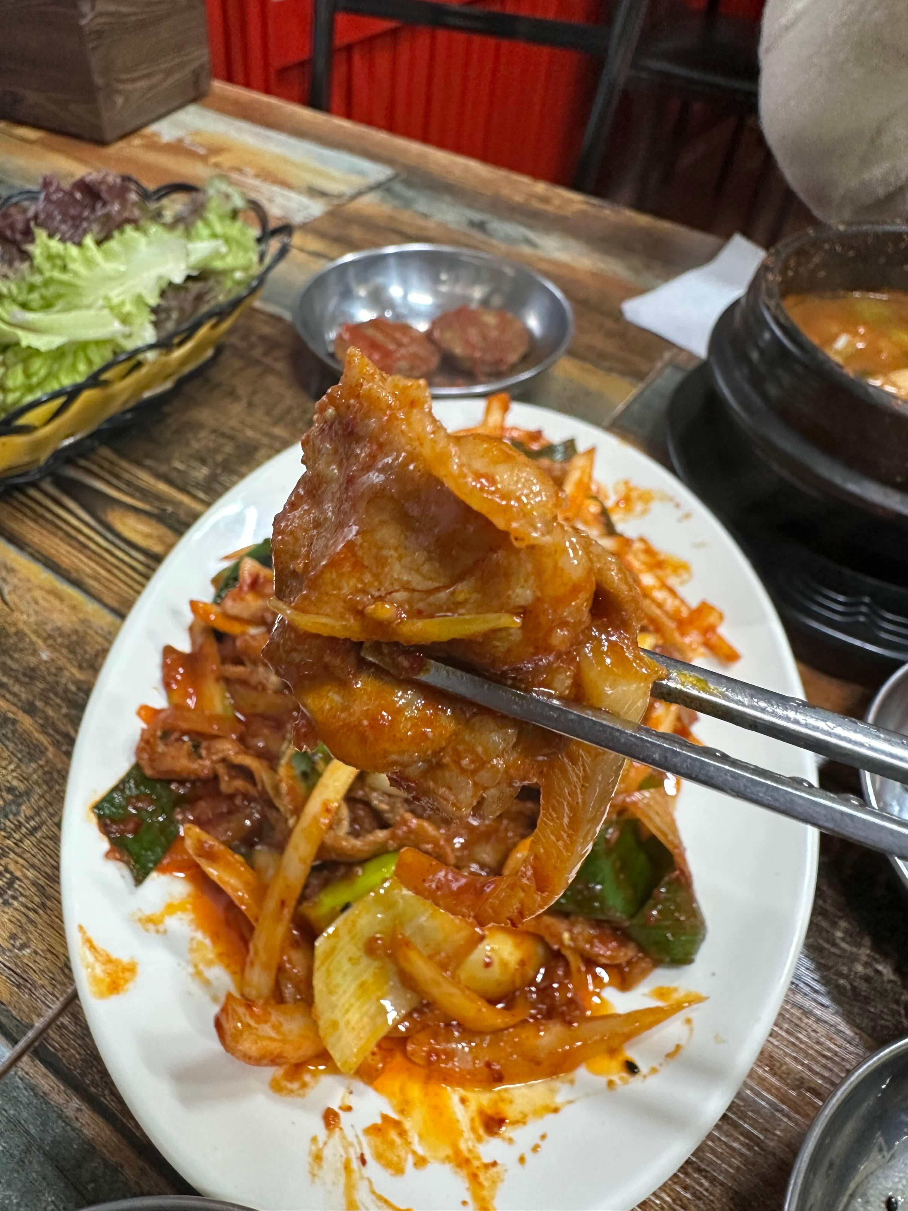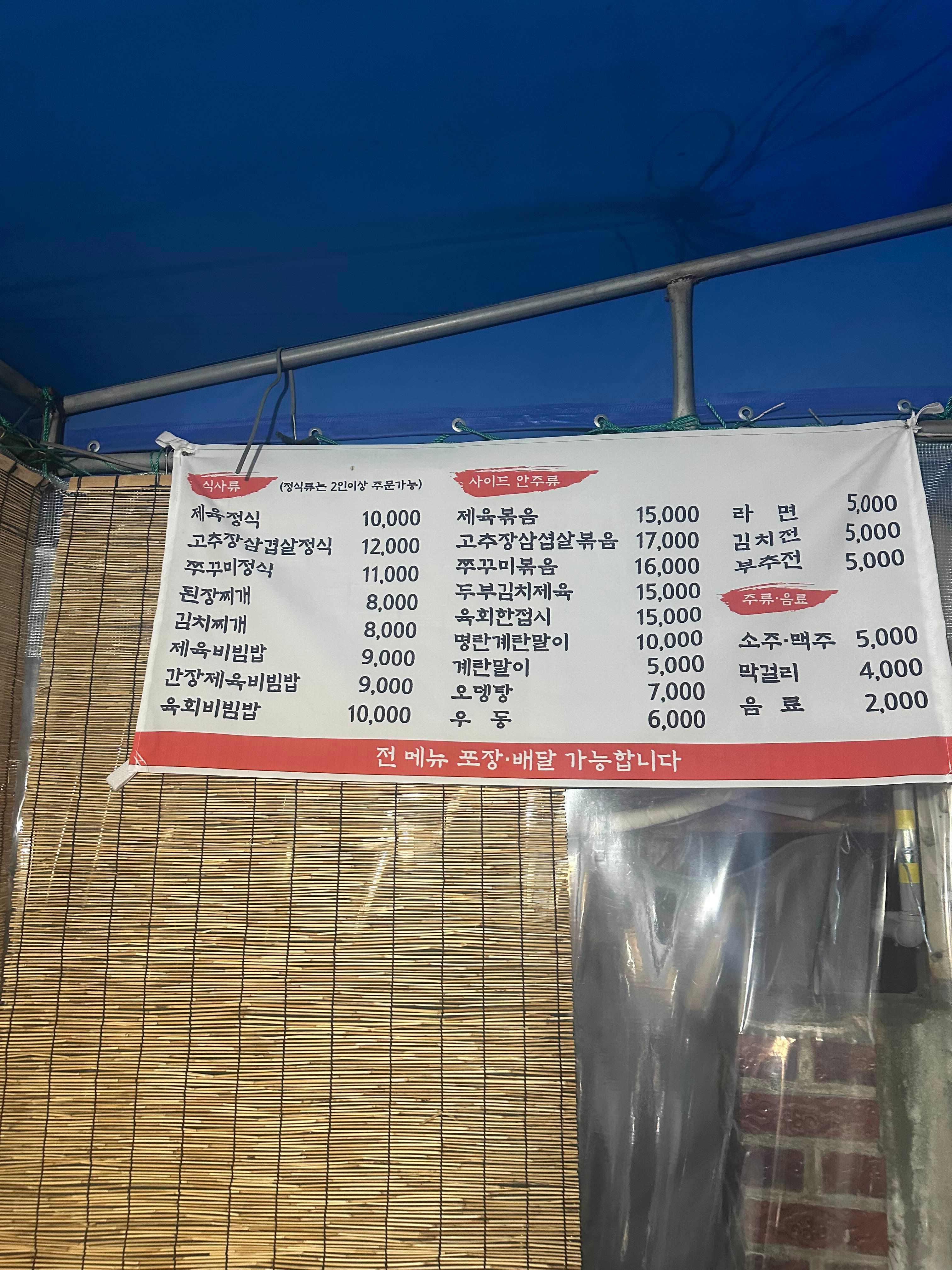 * 메뉴 : 제육볶음(2인이상), 쭈꾸미 정식, 된장찌개 등
