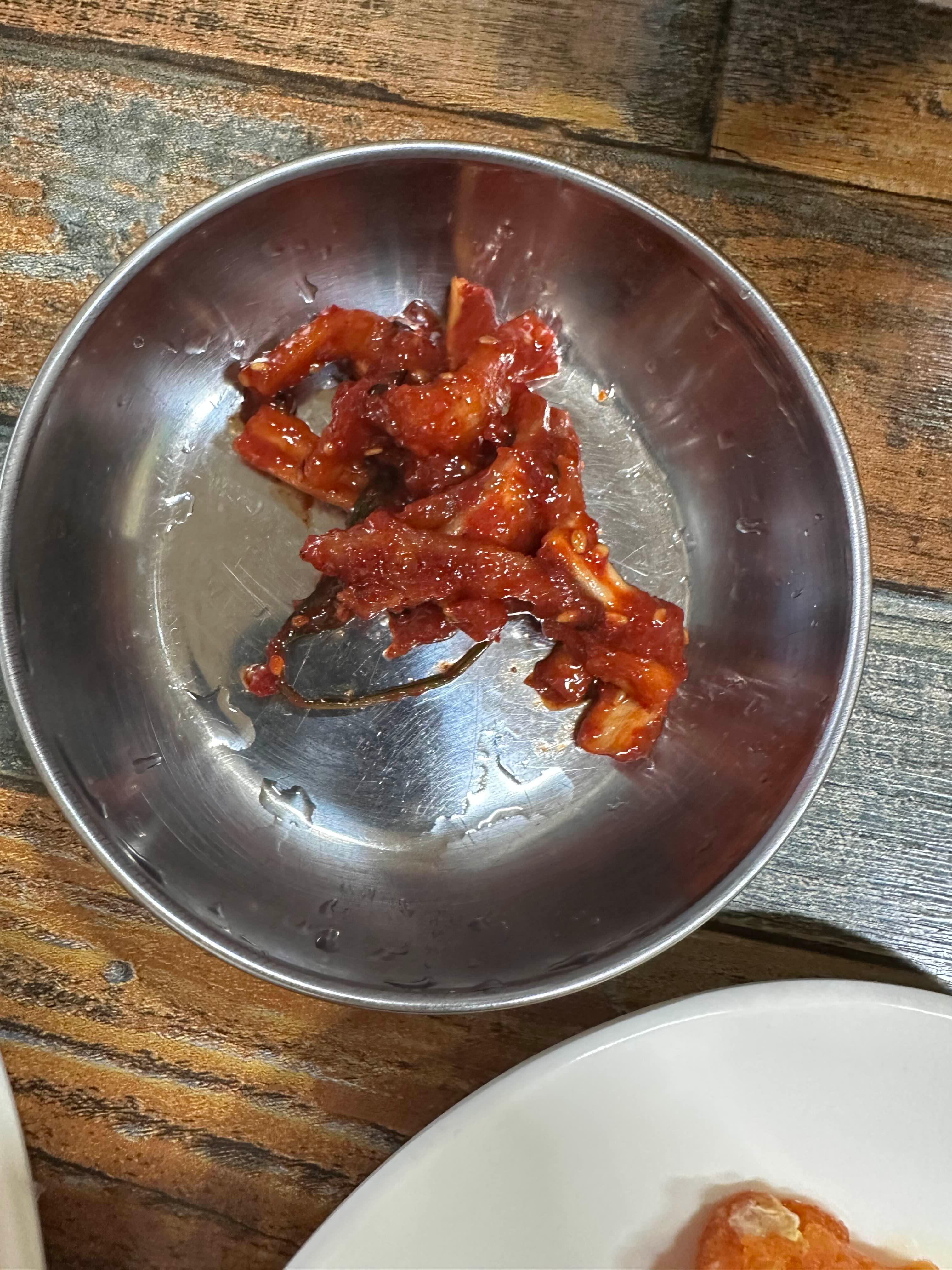 자 드디어 메인 메뉴인 제육볶음입니다. 지방이 많이 없고 살코기가 대부분이어서 제 취향이었습니다 ㅎ 양념도 잘 배 있고 나무랄 데가 없었습니다.