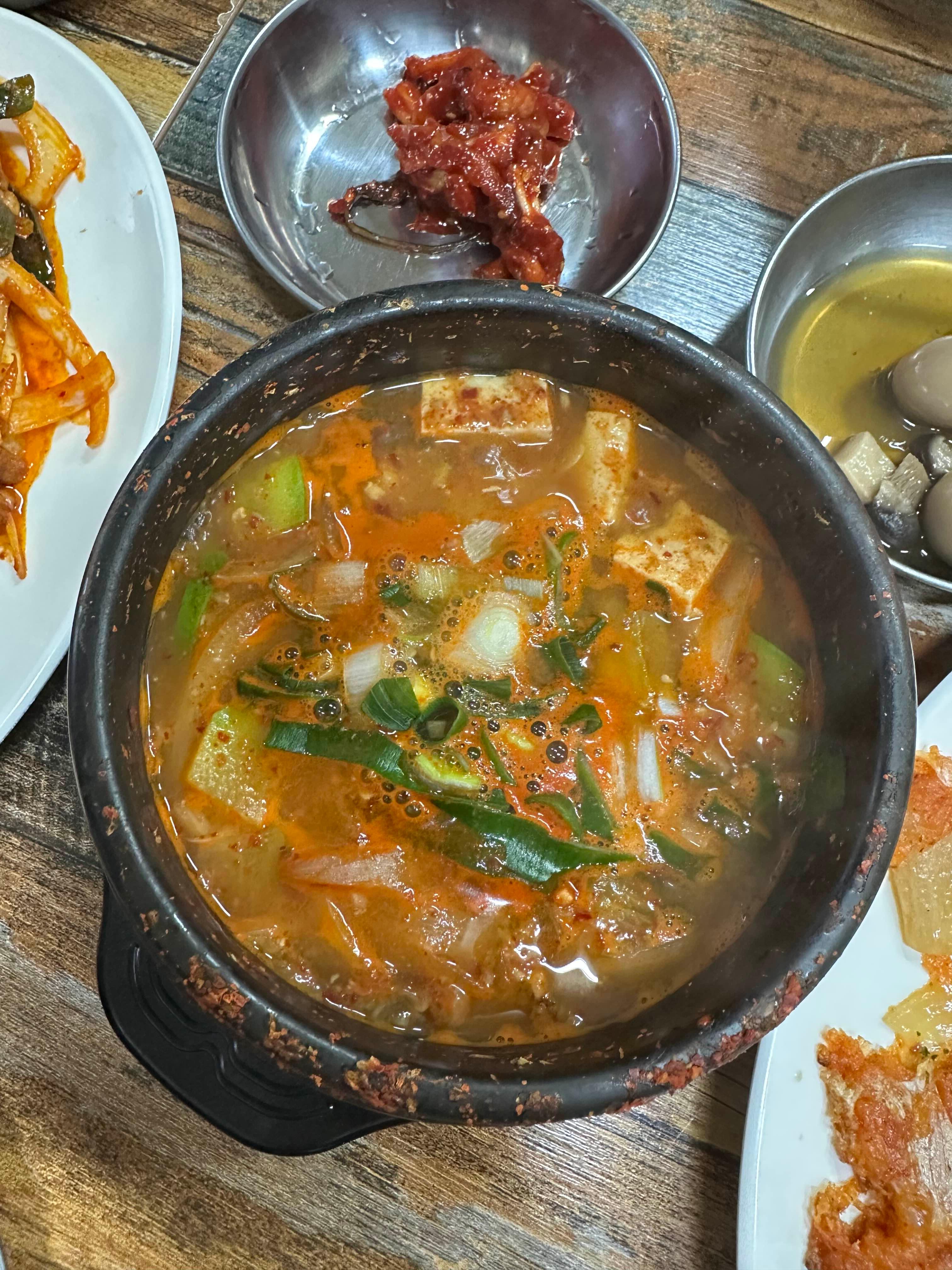 된장찌개도 주문했는데 강한 화력으로 뚝배기에 끓여주고 있습니다. 어쩐지 짭조름하고 깊은 맛이 있더라고요