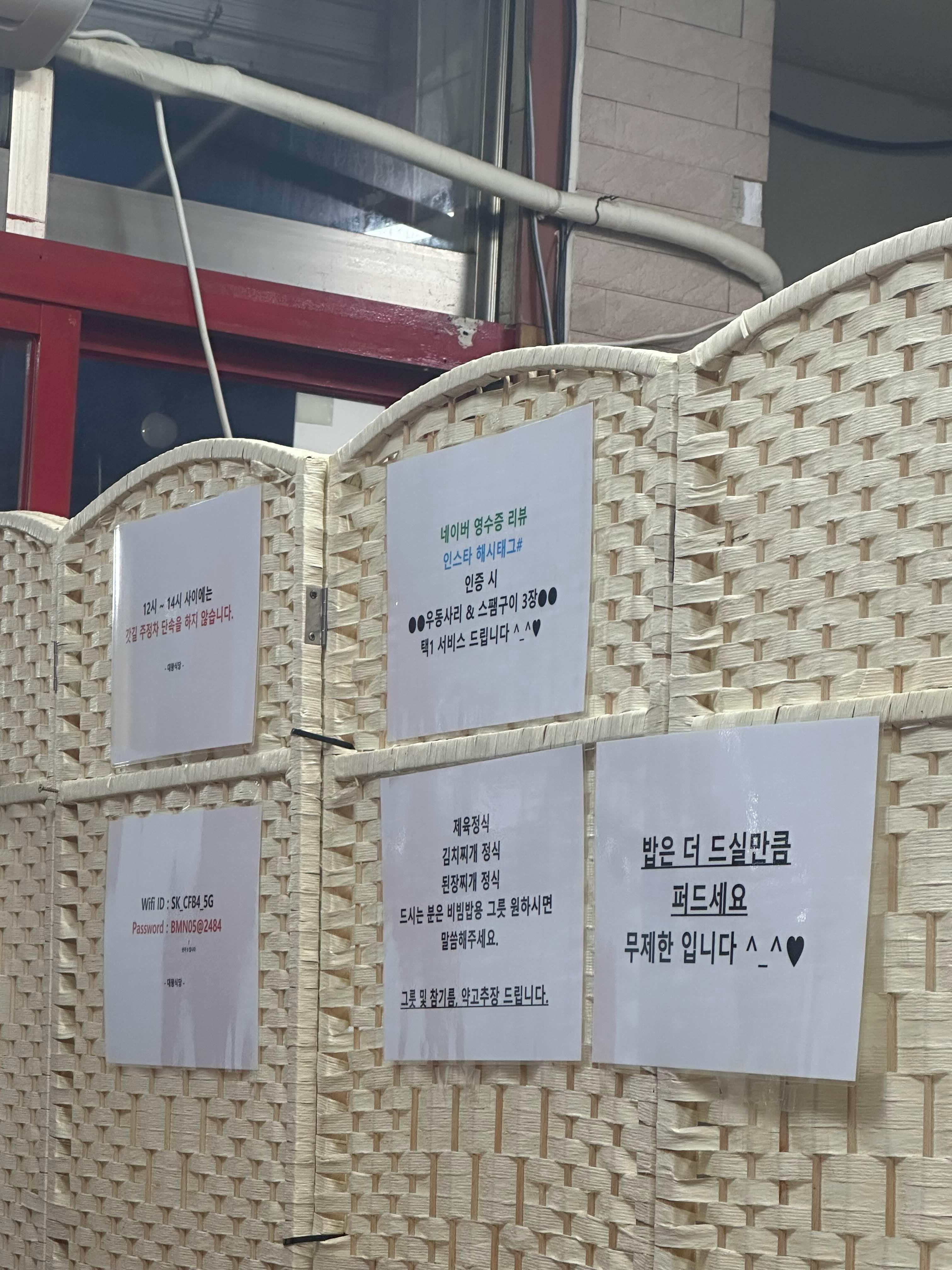 식당 내부에 MZ스러운 문구도 적혀 있습니다 ㅎㅎ