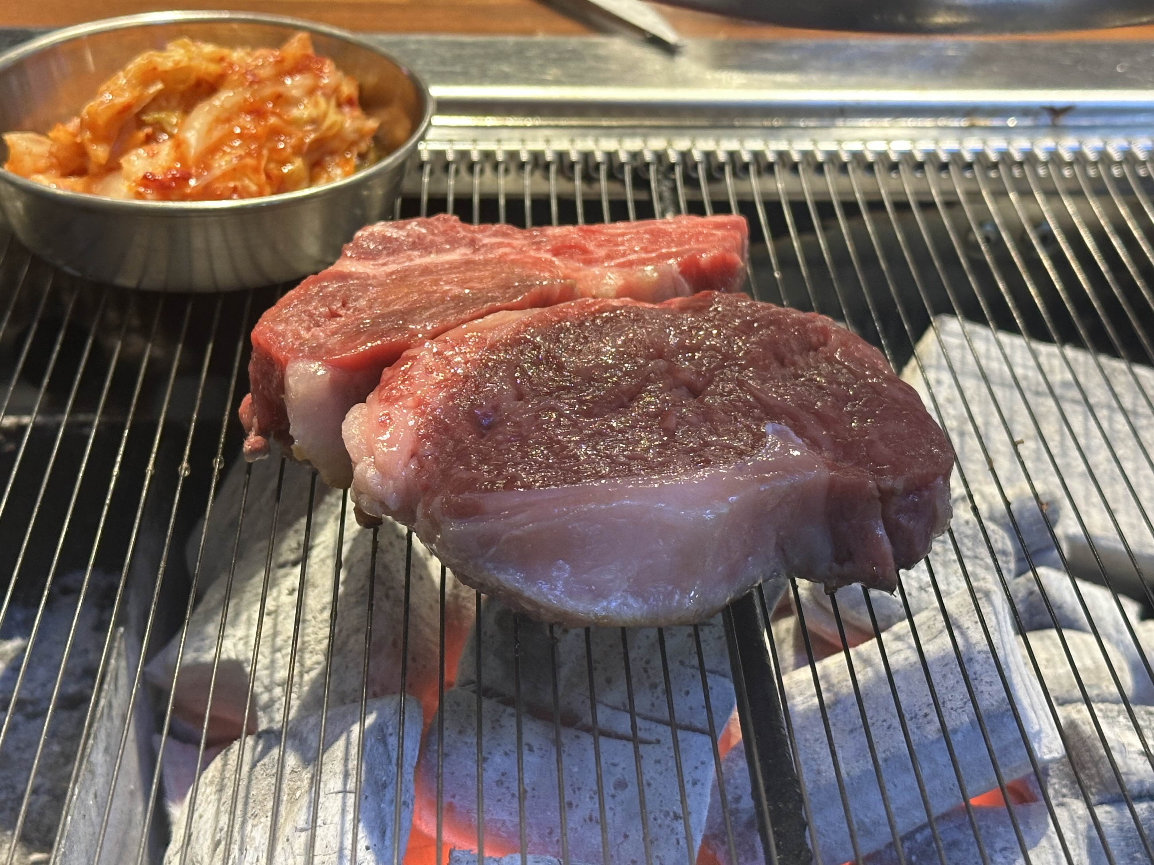 고기의 두께가 보이시나요?? 고기가 두꺼우니 육즙도 살아있고 씹는 맛도 배가 되는 것 같습니다