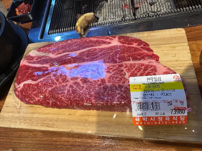 먹다가 부족하여 이번에는 등심 추가 했습니다 등심은 100g 당 12,800원이고요 가장 가격이 저렴한 부위입니다 참고로 살치살 갈비살은 20,000원 이더라고요