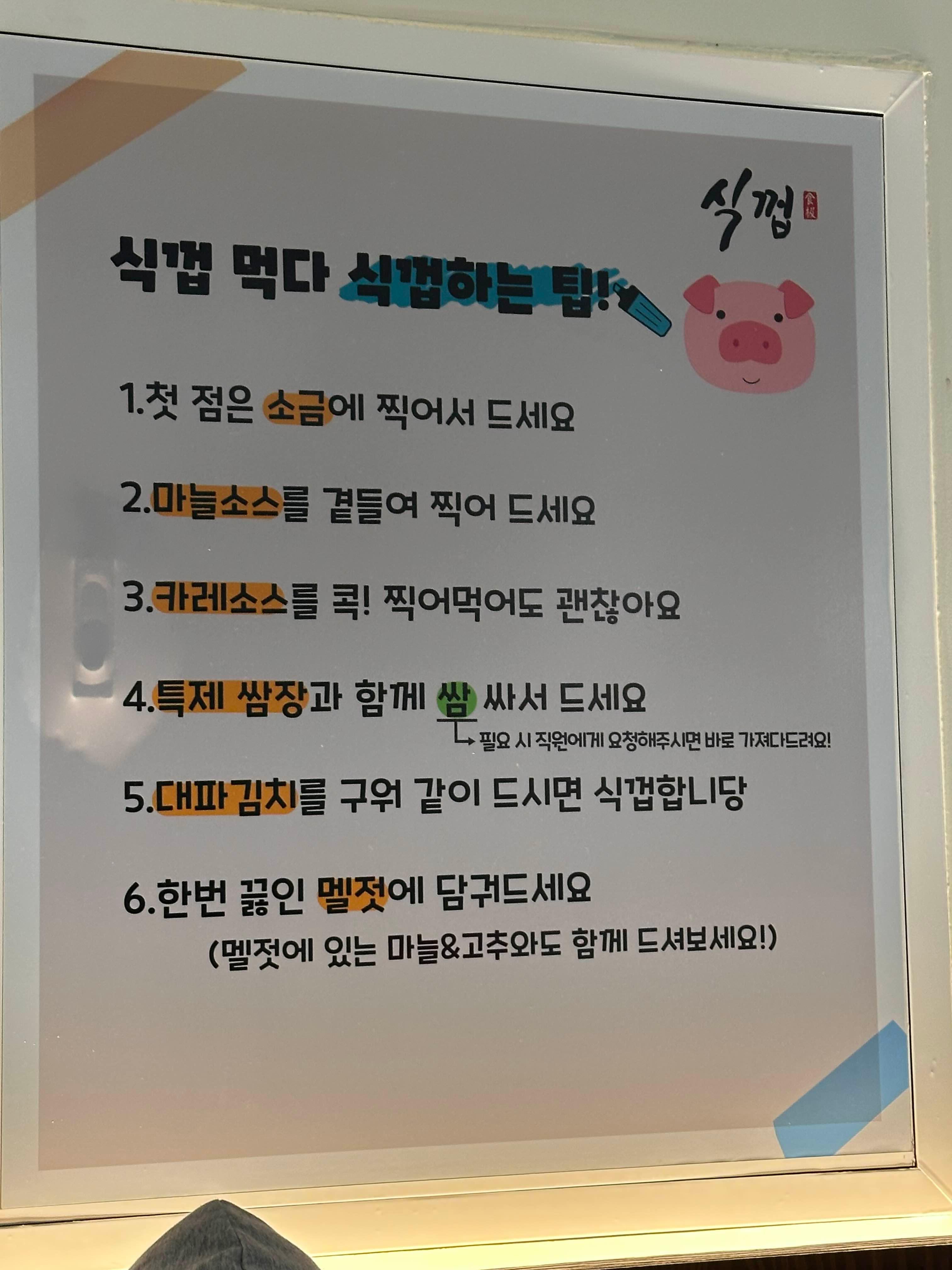 맛있게 고기 먹는 법이 식당 벽면에 설명되어 있습니다