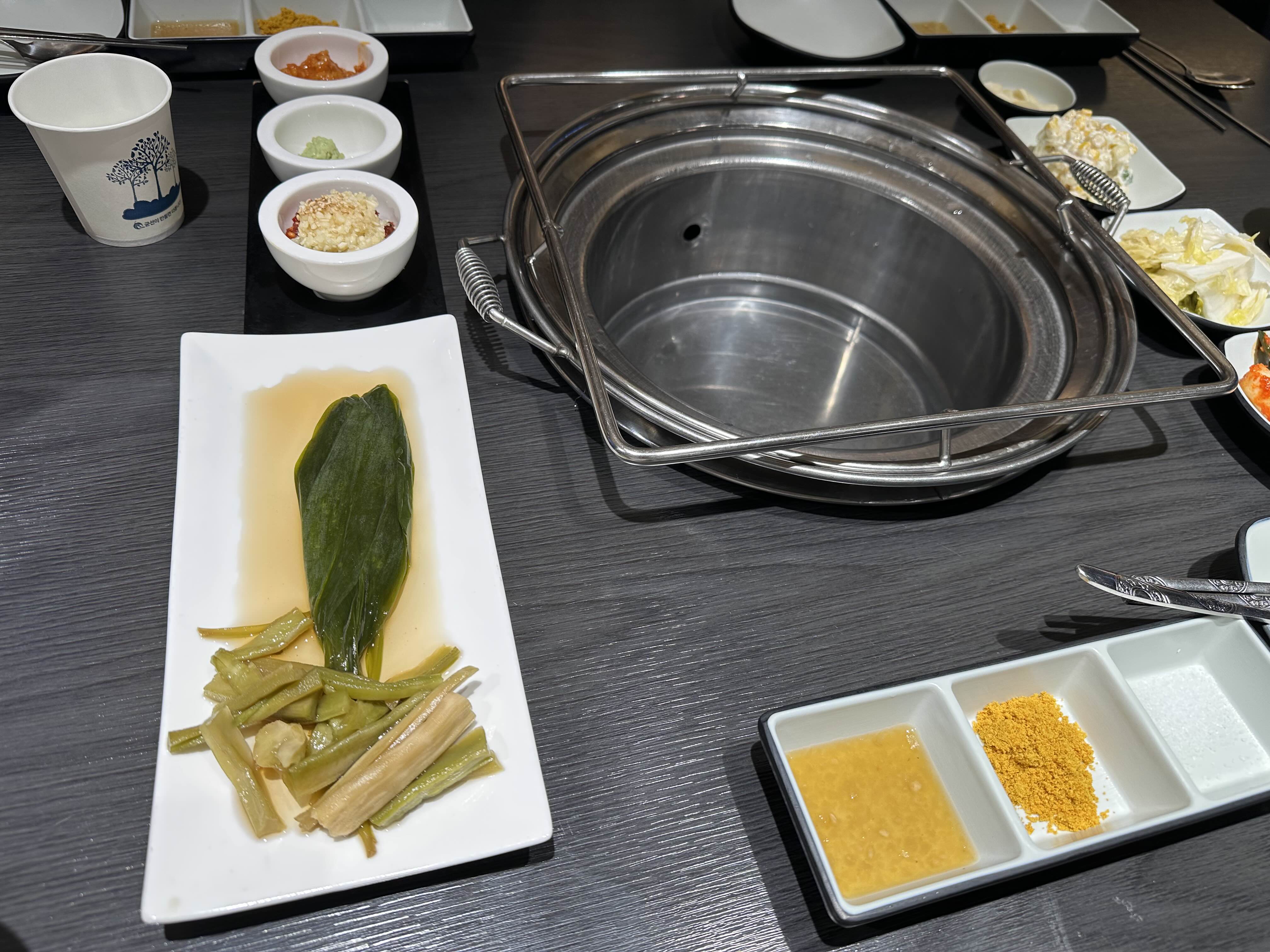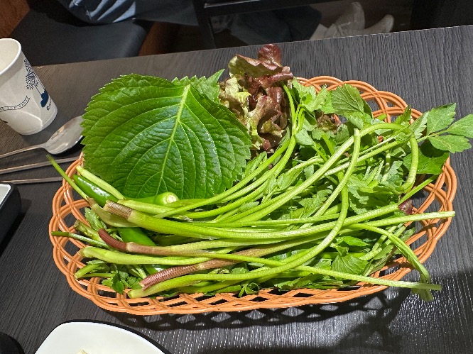 이 집의 킥!! 야채 특히 미나리를 주는 게 놀랐습니다 보통 3천 원 정도 내고 사 먹었는데 여기는 무료였습니다