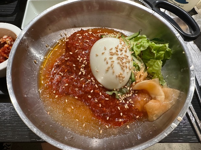 사실은 오늘 밀면이 먹고 싶어서 왔습니다 저는 물밀면 선호합니다ㅋㅋㅋ 물밀면에 약간 다진 양념 양념이 들어가서 제 취향에 맞았습니다 시원한 국물 드링킹과 함께 면치기 ㅎㅎ