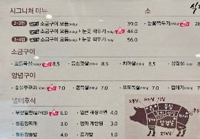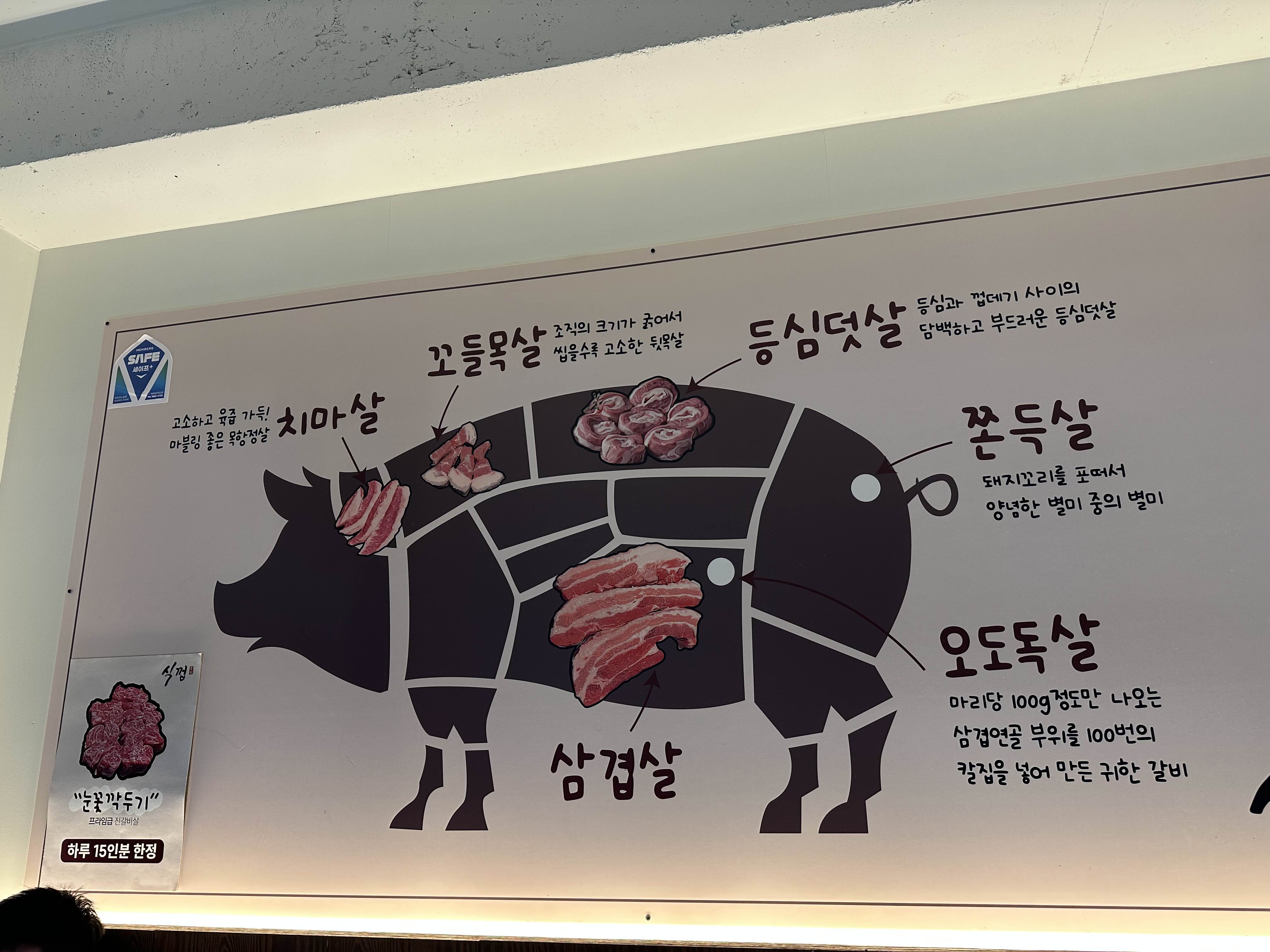 식당 내부에 돼지고기 부위에 대해 설명이 되어 있습니다