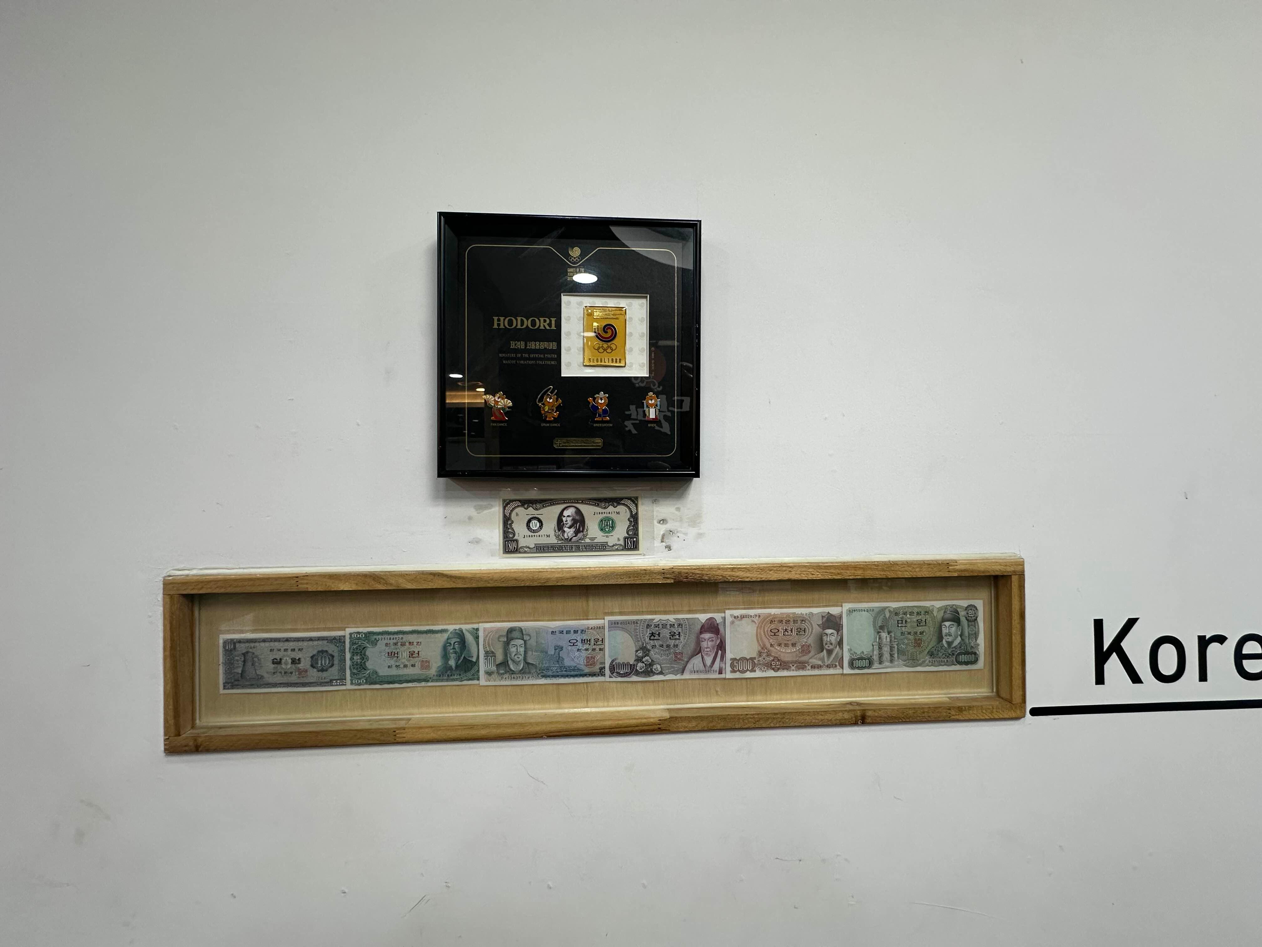 대기석에는 88 올림픽 마스코트인 호도리 장식(30대 이하는 모를 듯 ㅎㅎ)과 과거 지폐가 붙여져 있네요
