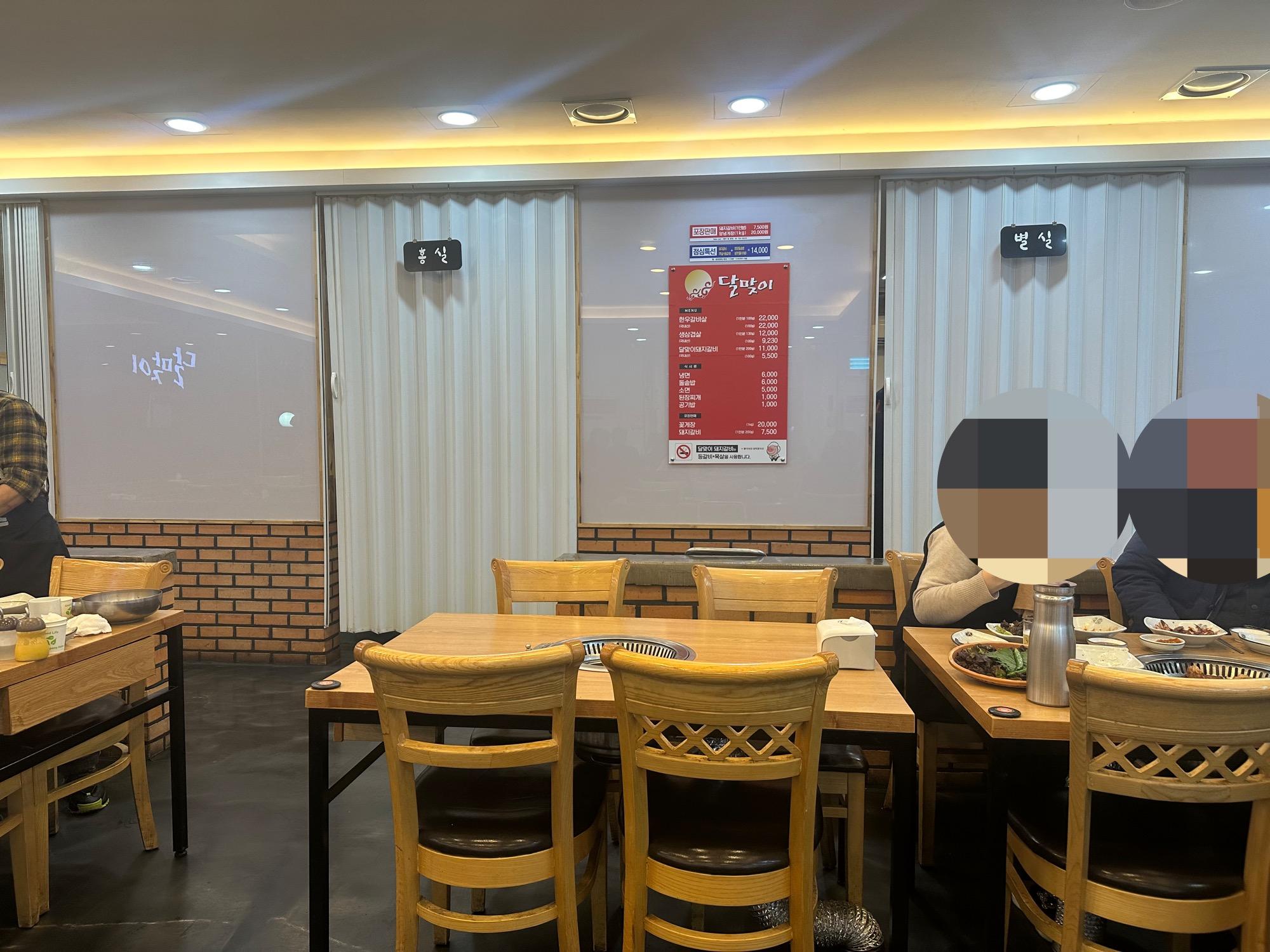 식당 내부 전경입니다. 홀 주변으로 단체 회식할 수 있는 룸이 5개 정도 있었던 것 같습니다. 그리고 홀에서도 여러 단체들이 있었습니다. 20시 이후에는 사람이 빠지기는 했는데 19시쯤에는 너무 시끌시끌...