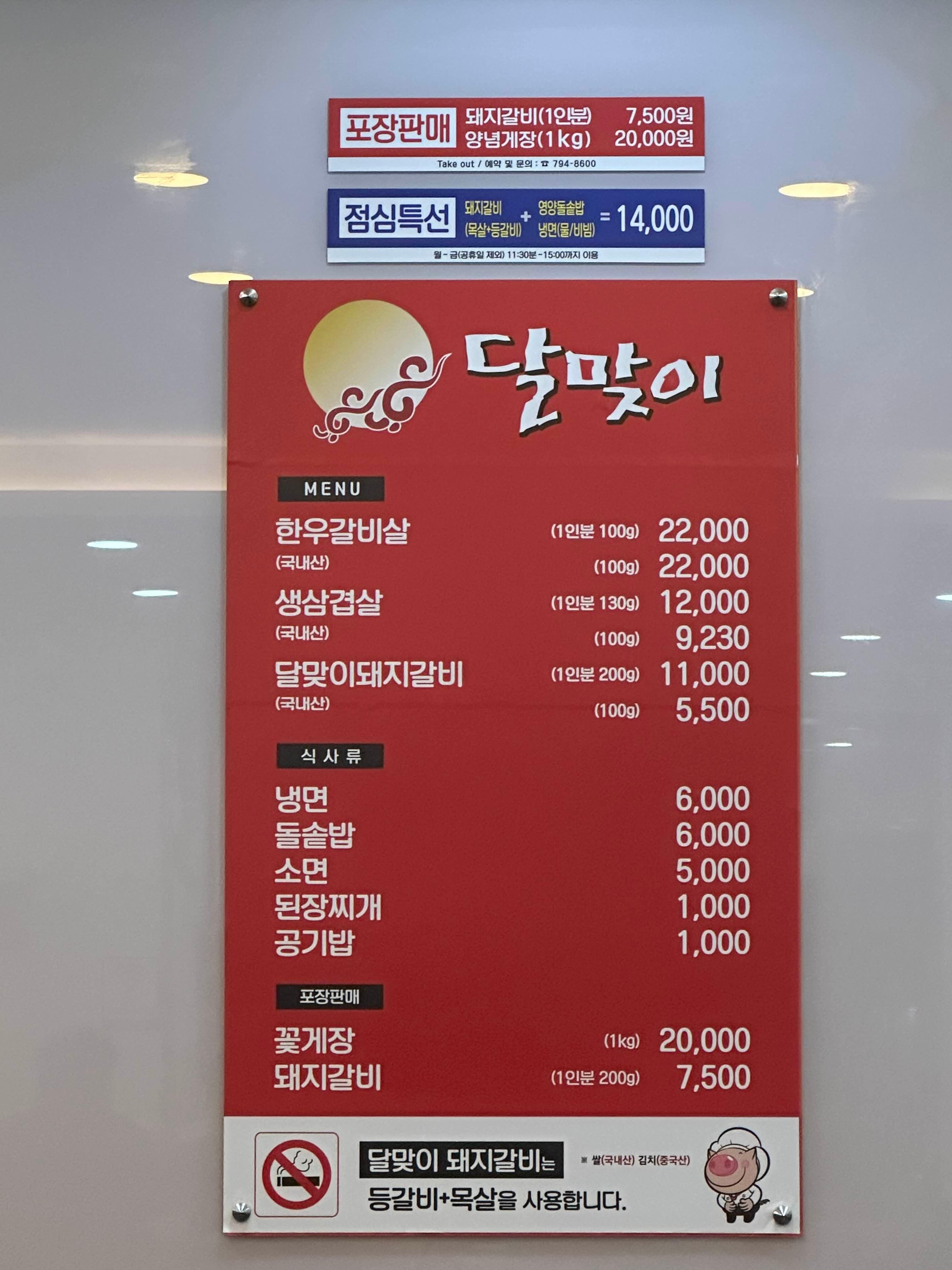 메뉴판입니다. 한우갈비살도 있지만.. 오늘은 돼지양념갈비를 주문했습니다. 돼지갈비 포장도 되고 점심시간에는 점심특선도 되는 것 같네요 ㅎㅎ 기회 되면 방문해서 후기 남기겠습니다.