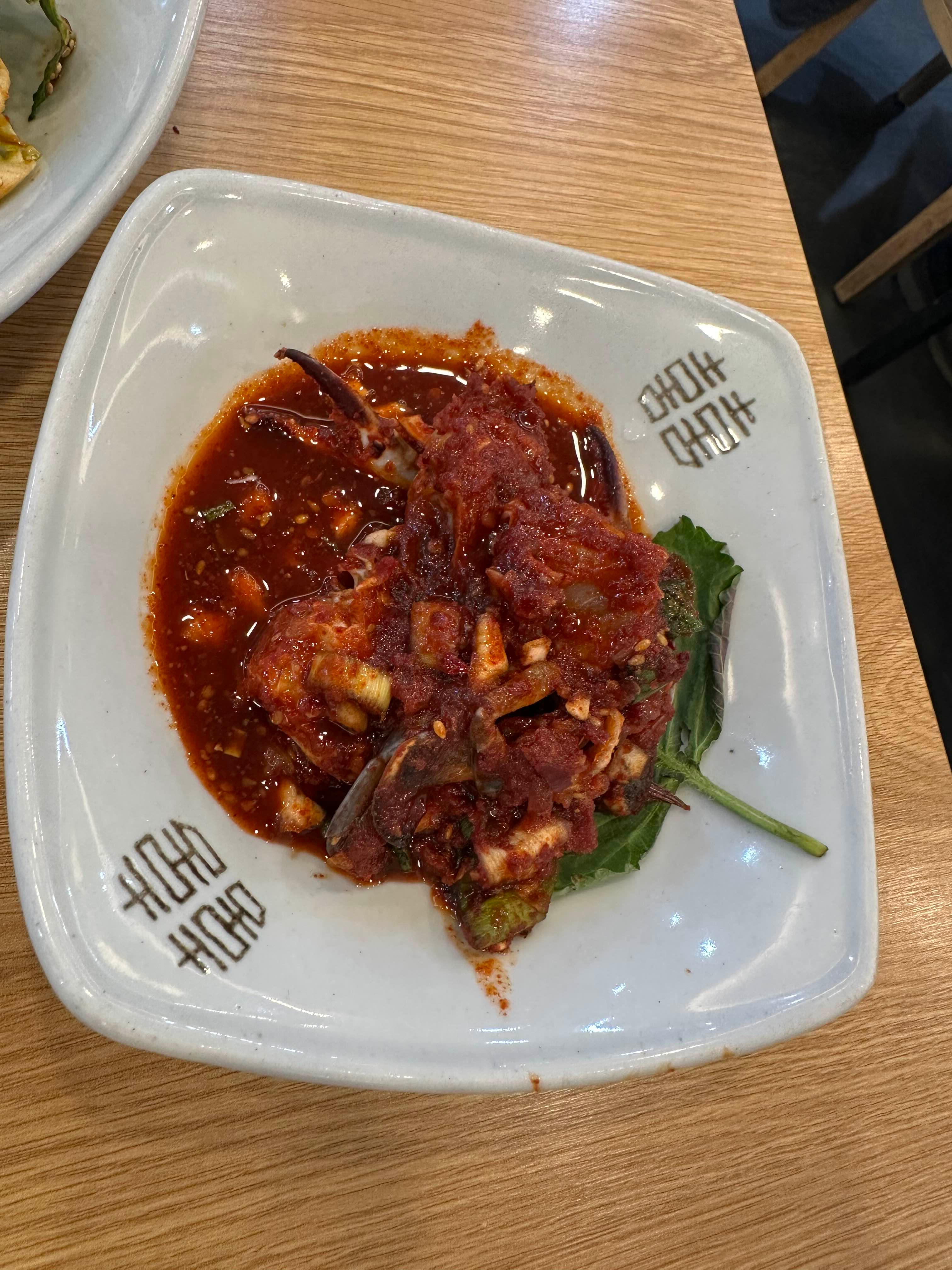 밑반찬 설명 들어가겠습니다. 양념게장입니다. 너무 짜지 않고 밥 없이 먹을 정도로 괜찮습니다. 리필하기 눈치가 보여 용기 내서 물어보니 1번만 리필해 주신다 하네요 ㅎㅎ