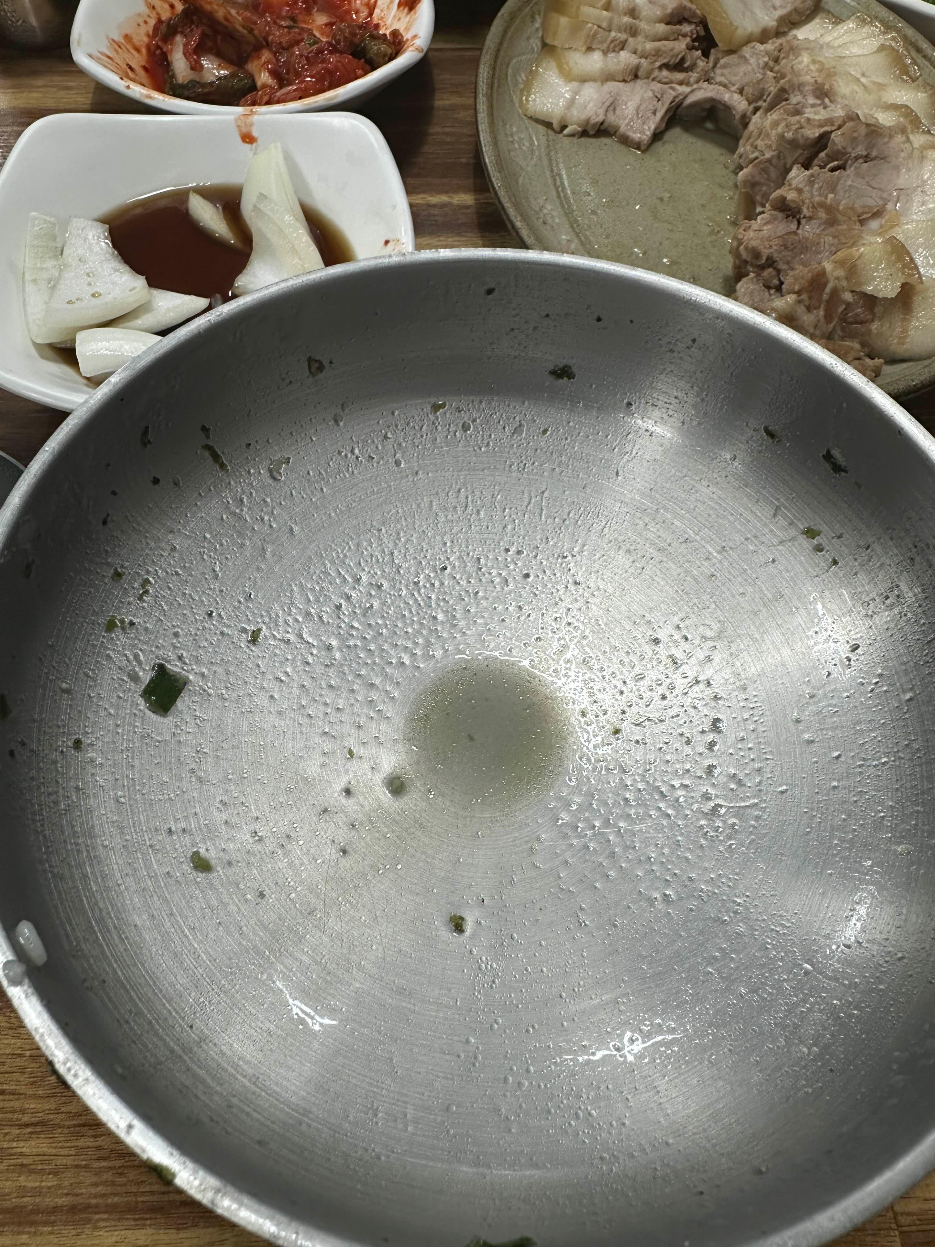 한그릇 클리어 ㅎㅎ 밥까지 말아서 해치웠습니다 ㅎㅎ 수육은 좀 남겼네요 양이 좀 많기도 했고요