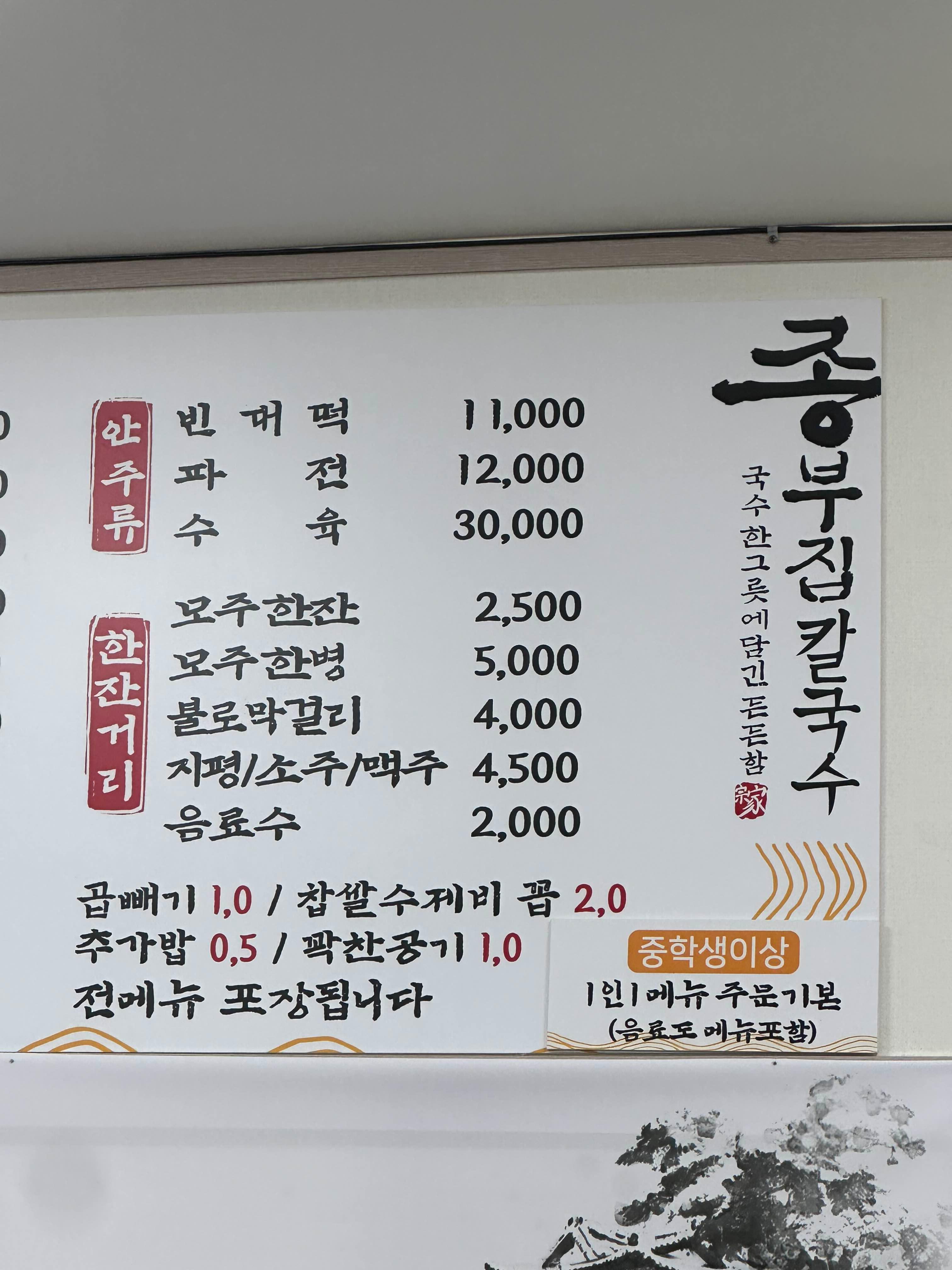 중학샹 이상은 1인 1메뉴 시키셔야 합니다. 음료도 1메뉴에 포한된다네요 ㅎㅎ