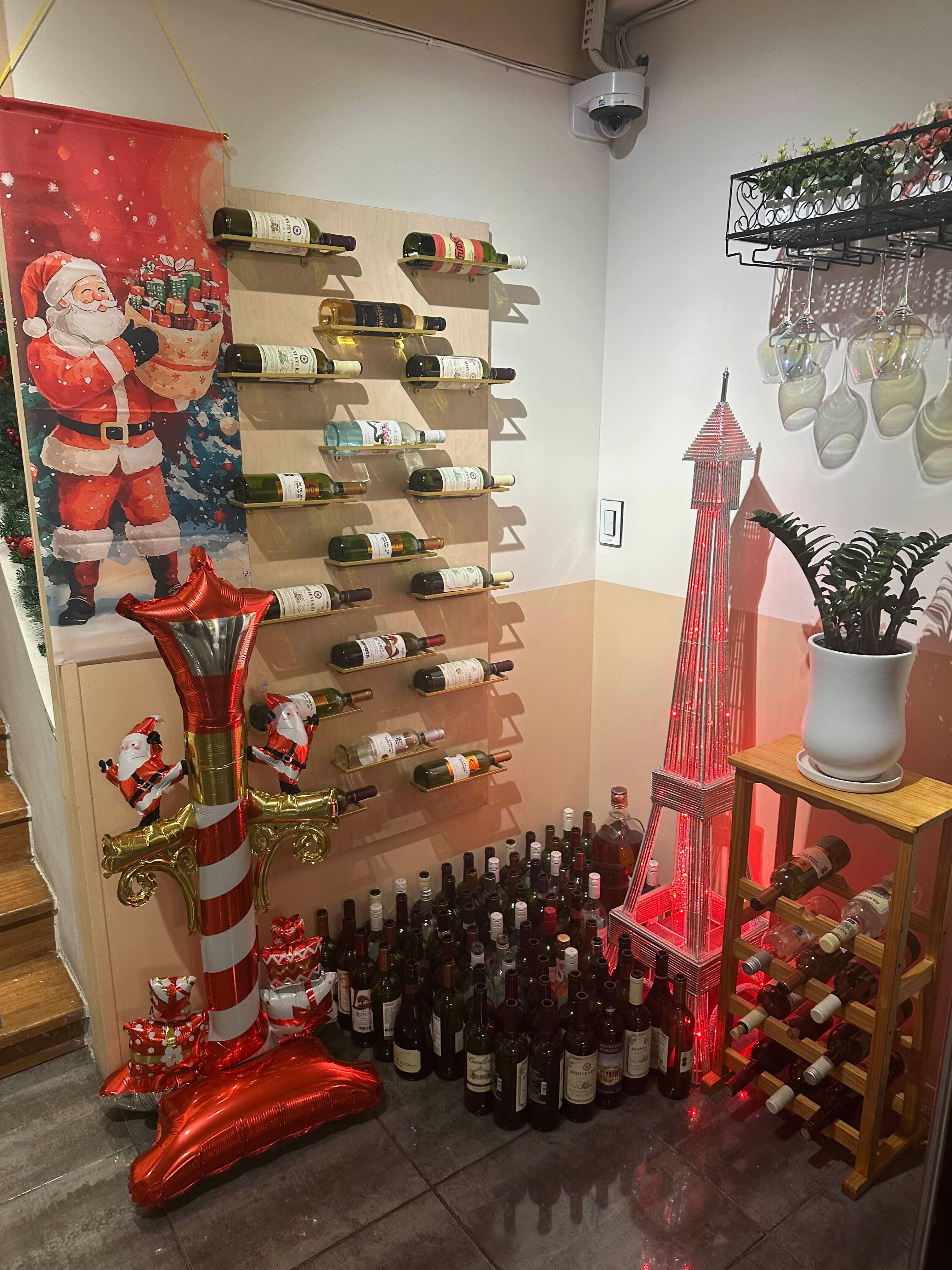 와인병으로 산타와 함께 인테리어를 해 놓았습니다