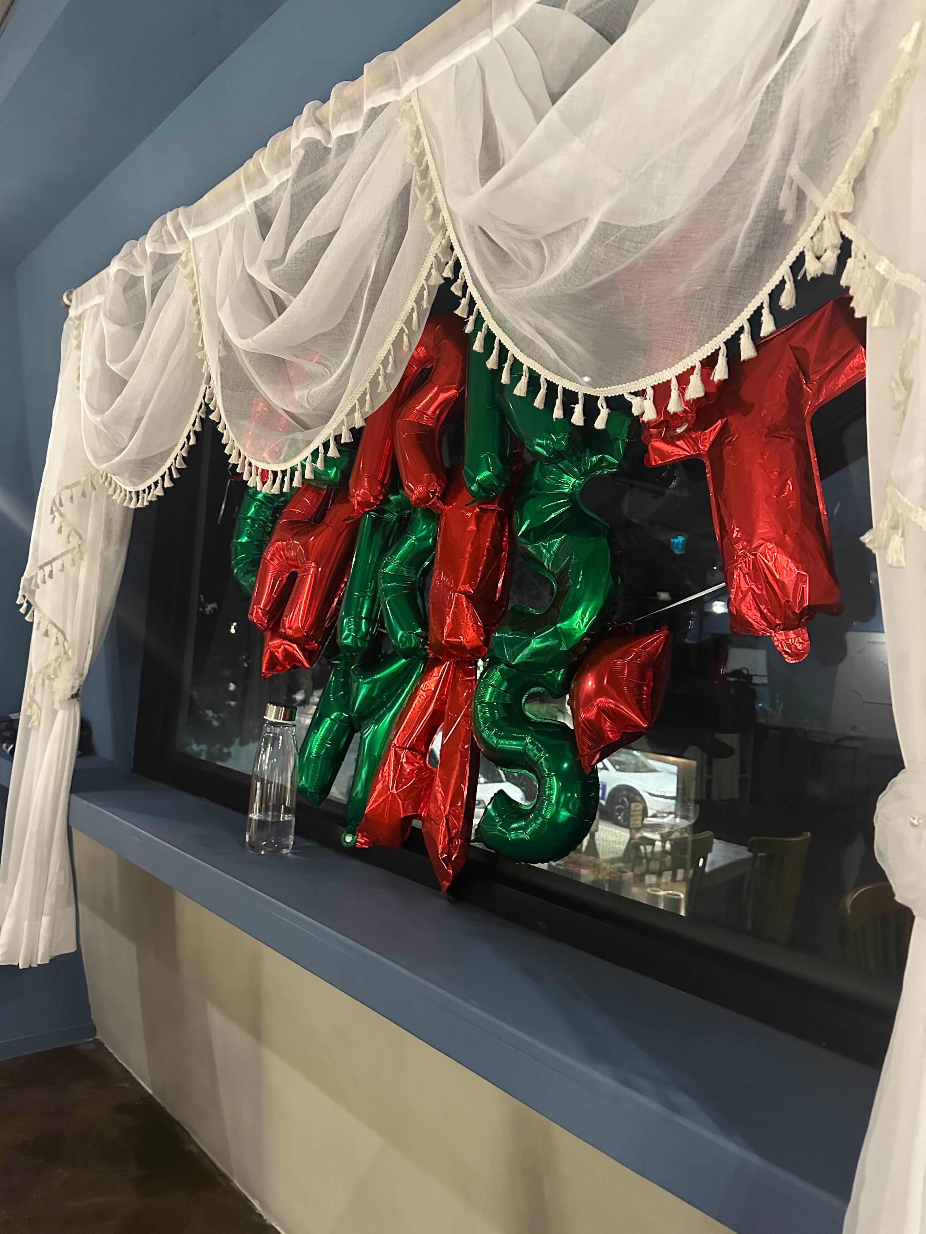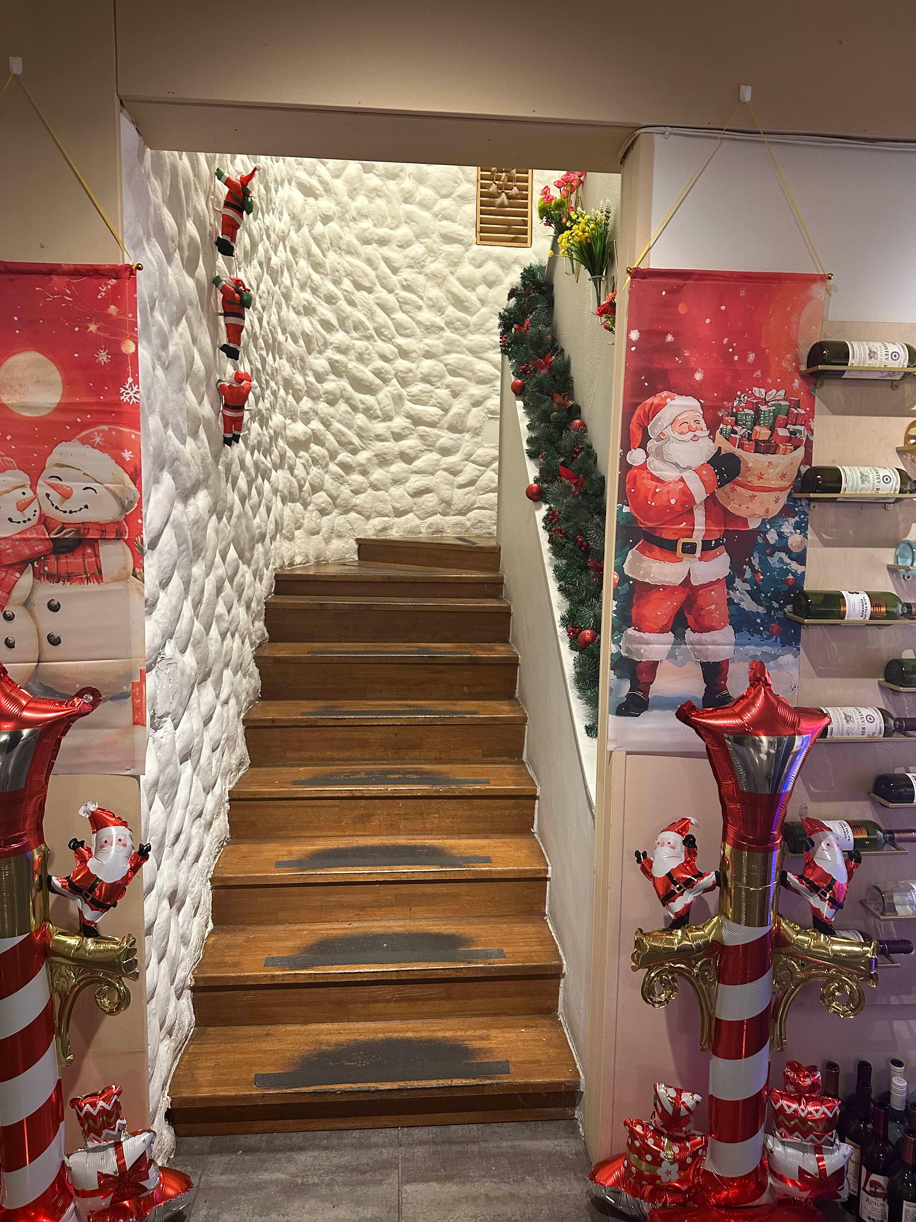 2층에 메리크리스마스 풍선이 붙어 있습니다