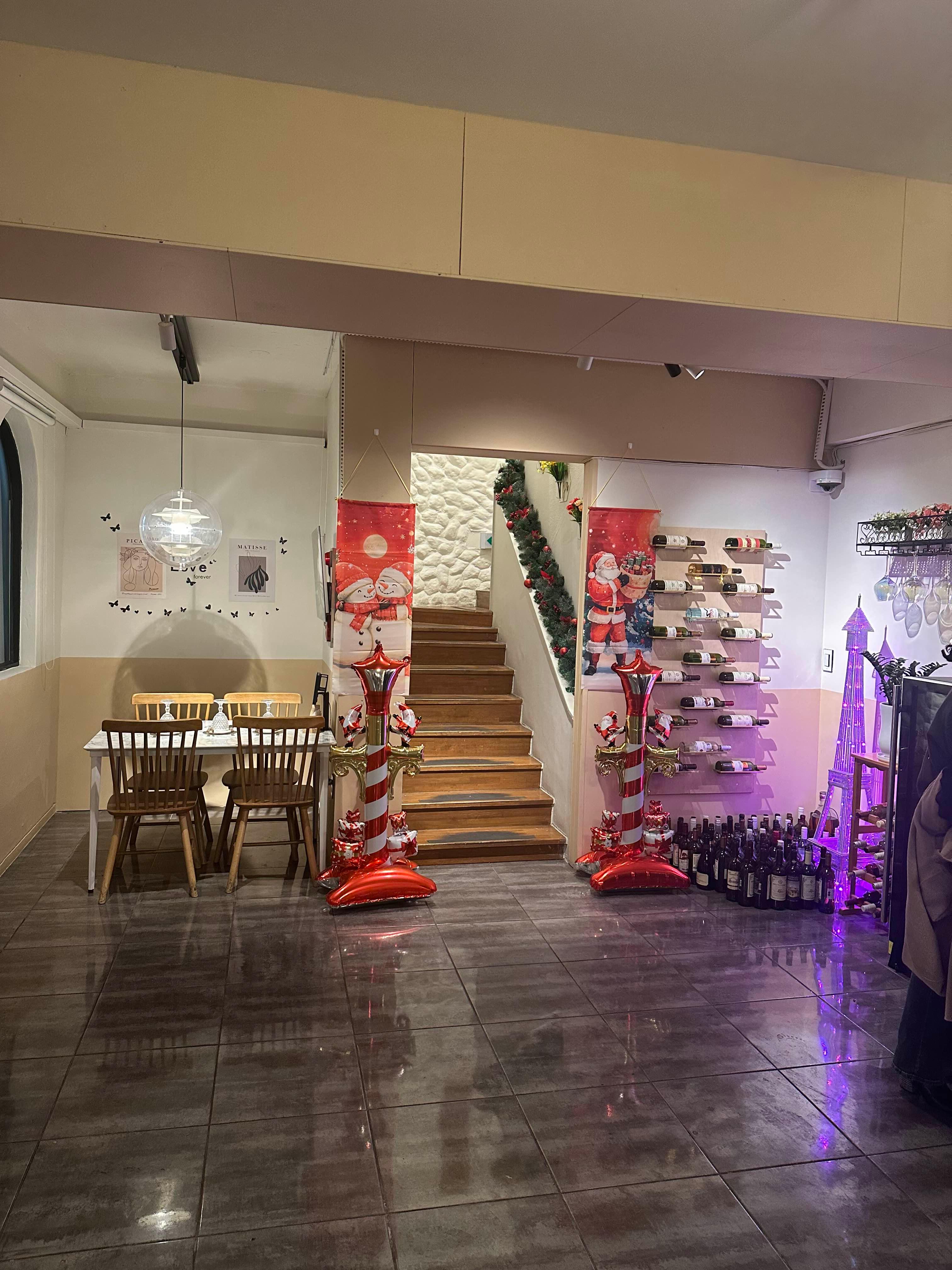 식당 입구입니다. 앞에 주차장이 있는데 5대 정도 주차 가능 합니다. 식당에 산타가 매달려 있는데 귀엽네요 ㅎㅎ