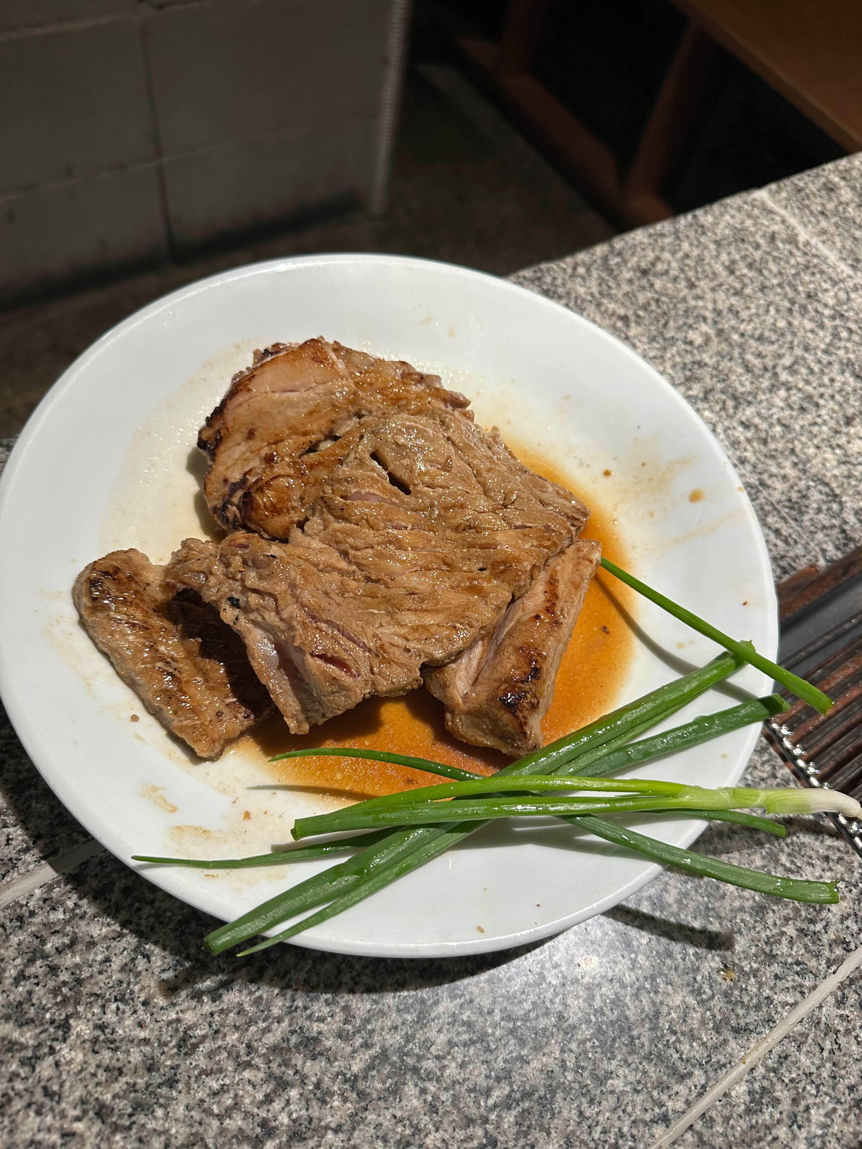 그리고 갈매기살 2인분입니다. 고기가 두툼하고요 육즙이 상당합니다. 육향도 약간 나는 것 같아서 개인적으로는 양념갈비가 더 좋았던 것 같습니다(육향은 나쁜 육향 아닙니다)