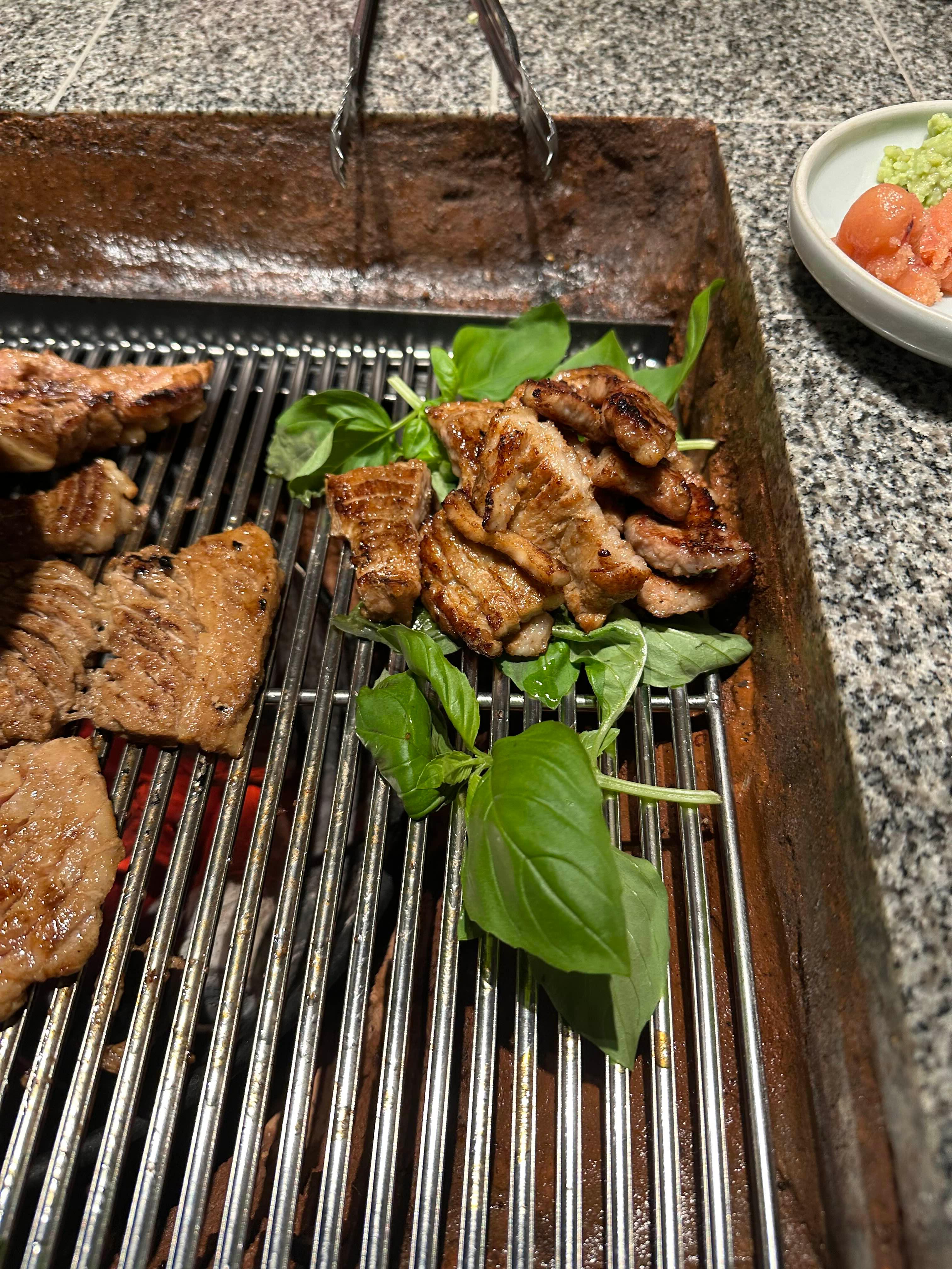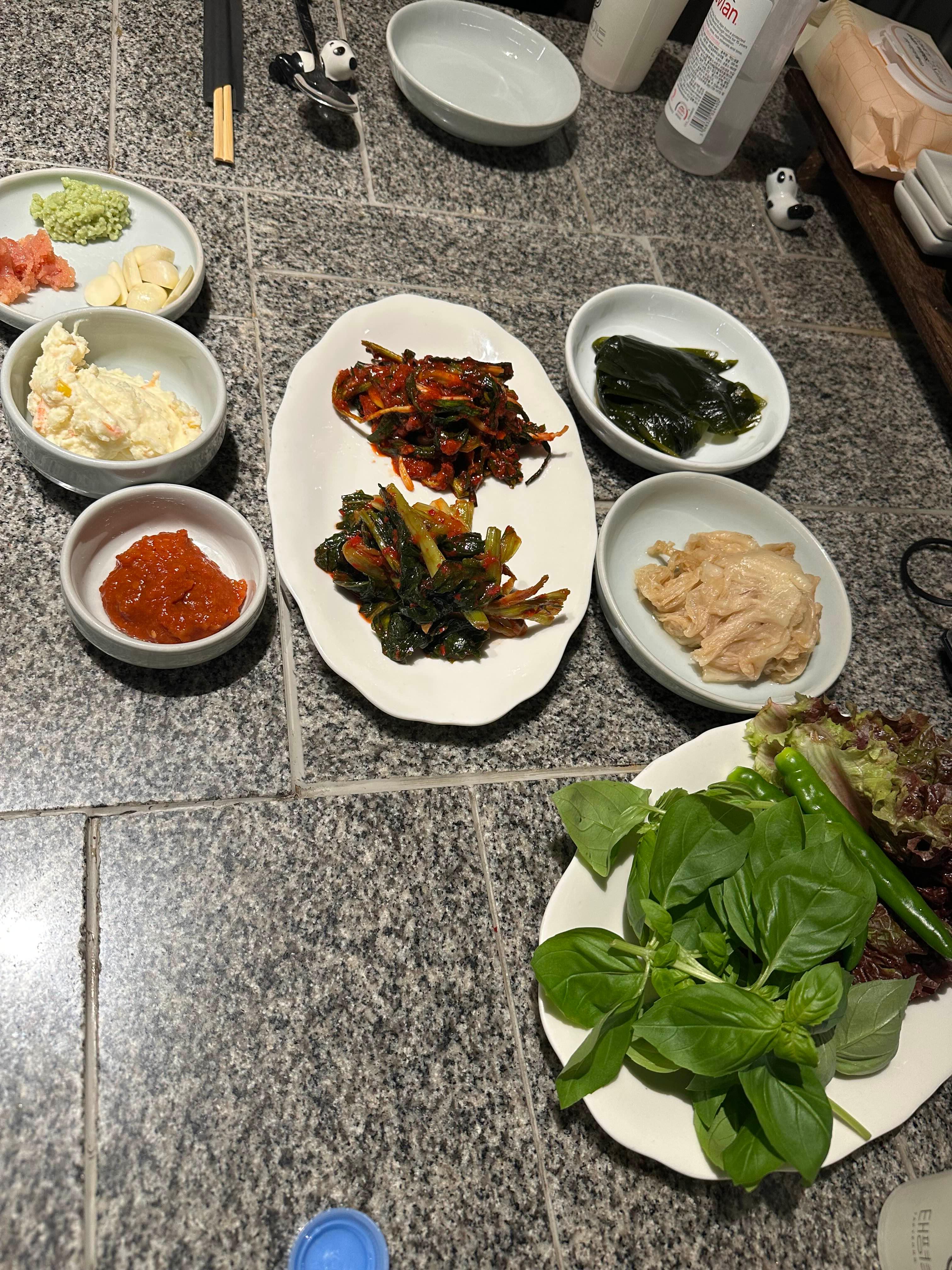 다 구워진 고기입니다 바질을 쌈과 같이 주셨는데 그 위에 고기를 올리니 바질향이 고기애 배었네요. 바질향 싫어하시는 분은 따로 드셔야 할 것 같습니다